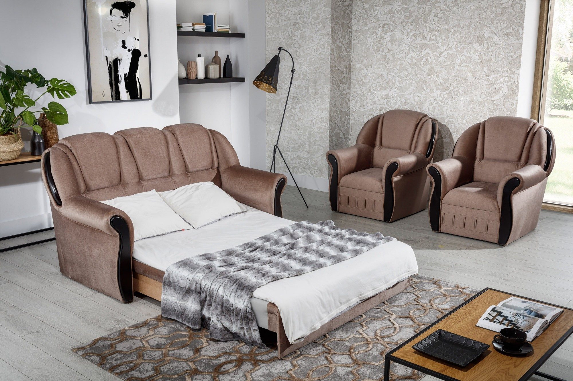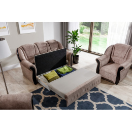 Pohovka Lord je elegantní kus nábytku v tradičním stylu, který kombinuje klasický design s pohodlím a funkčností. Díky svým kompaktním rozměrům 180x85x105 cm se perfektně hodí jak do malých, tak i velkých interiérů. Sedadlo, vyplněné vlnovou pružinou typu A a pěnou T3030, zajišťuje odolnost a pohodlí, zatímco opěradlo s pěnou T2130 a T2540 poskytuje správnou oporu pro záda. Další výhodou pohovky je její funkce spaní, která umožňuje rychlou přeměnu na pohodlný prostor pro odpočinek, a také úložný prostor na lůžkoviny pro snadnou organizaci nezbytností. Čalouněné opěradlo umožňuje umístění kdekoli v obývacím pokoji, zatímco 2.5 cm černé kluzáky zajišťují stabilitu a chrání podlahu. Jeho klasický design, precizní řemeslné zpracování a vysoce kvalitní materiály činí pohovku Lord ideální volbou pro elegantní interiéry, které kombinují nadčasový styl s funkčností.
