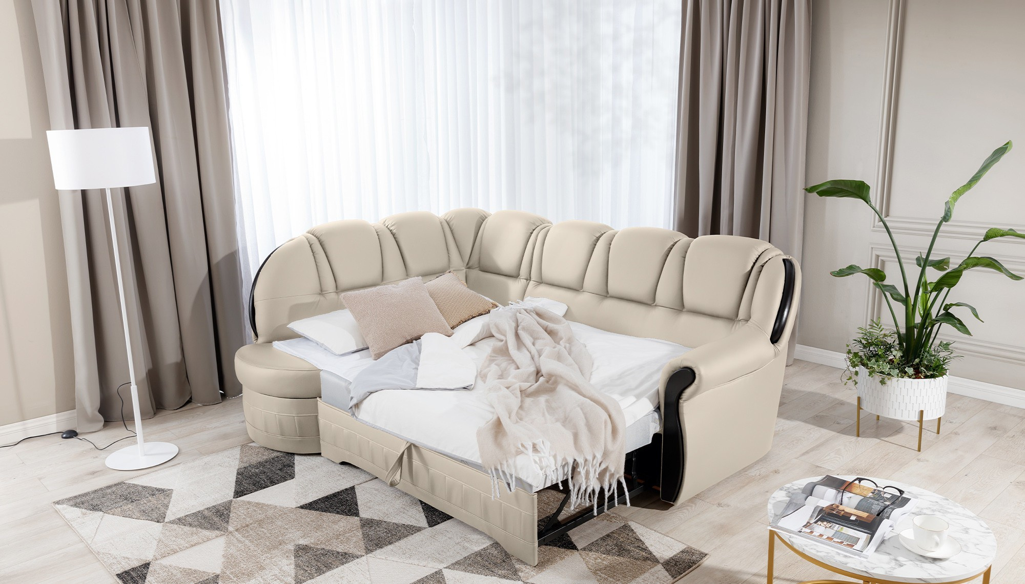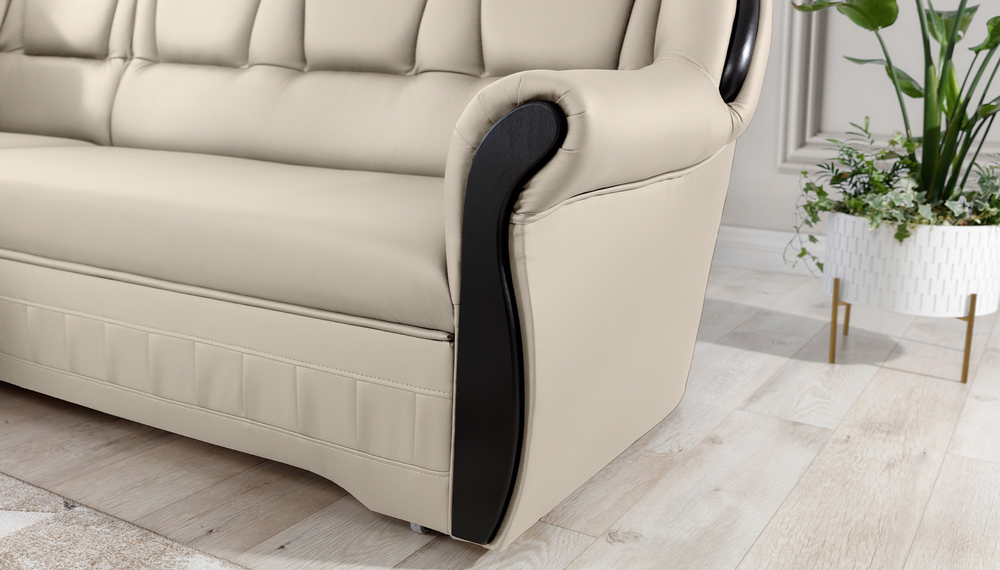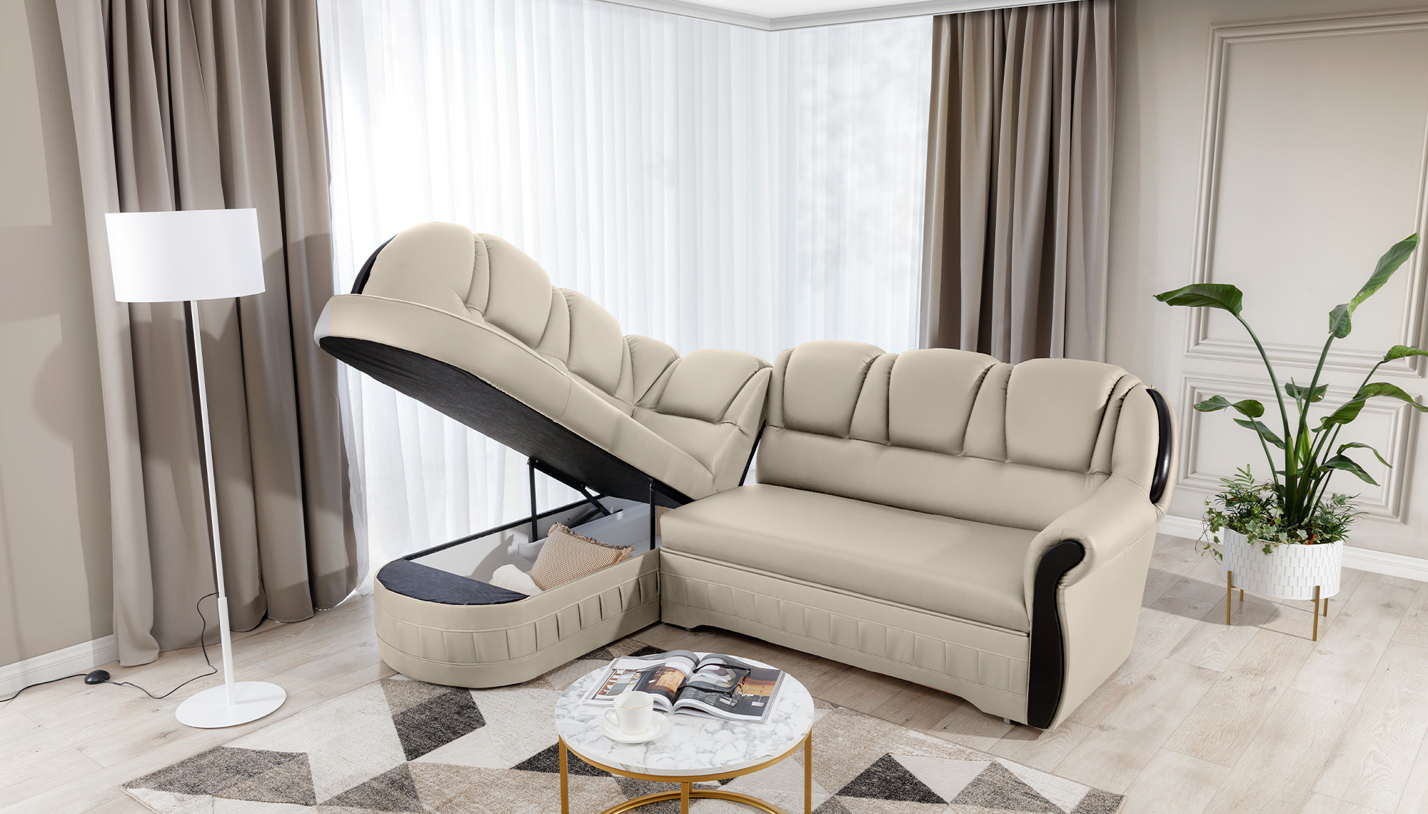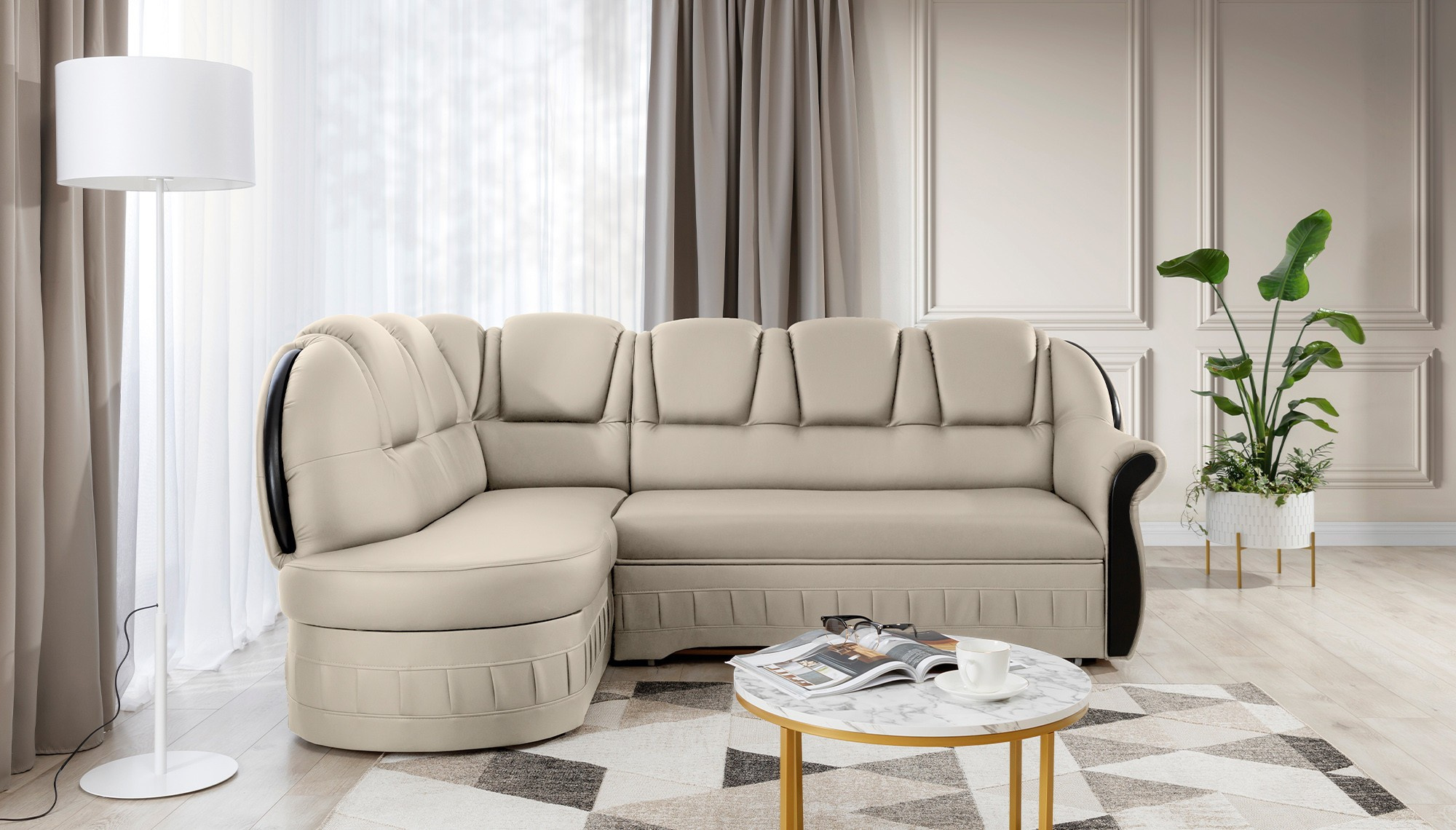 Lord je elegantní a vkusná rohová pohovka, která není jen funkčním kusem nábytku, ale díky svému designu se může stát také mimořádnou ozdobou obývacího pokoje. Rozměry 243 x 180 x 105 cm zaručují velký prostor pro relaxaci během dne a díky funkci intuitivního rozkládacího systému typu delfín lze tento komfort pocítit i v noci. Prostorná spací plocha o rozměrech 195 x 125 cm vám umožní vychutnat si výjimečnou měkkost a flexibilitu sedáku našeho nábytku. To vše je díky vlnité pružině a pěně T30, ze které je roh vyroben. díky čemuž je tělo během odpočinku stabilizováno a správně podepřeno. Díky takovému použití je minimalizováno riziko vzniku nevzhledných prohlubní, poškození a oděrek, a naše tělo si vždy udržuje správnou polohu. V modelu Lord je nemožné nevěnovat pozornost: zaobleným opěradlům, pohodlným opěrkám, prostorným sedadlům, prostornému úložnému prostoru na lůžkoviny, vkusnému prošívání, jedinečnému tělu a stylu, ve kterém byl roh udržován. Určitě stojí za to mít takovou jedinečnou rohovou pohovku ve svém domově.