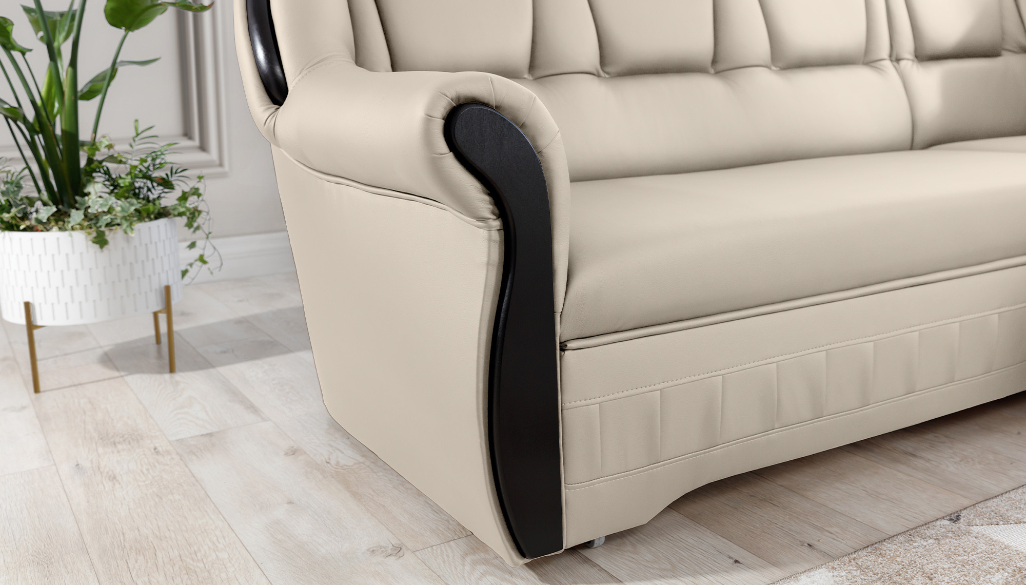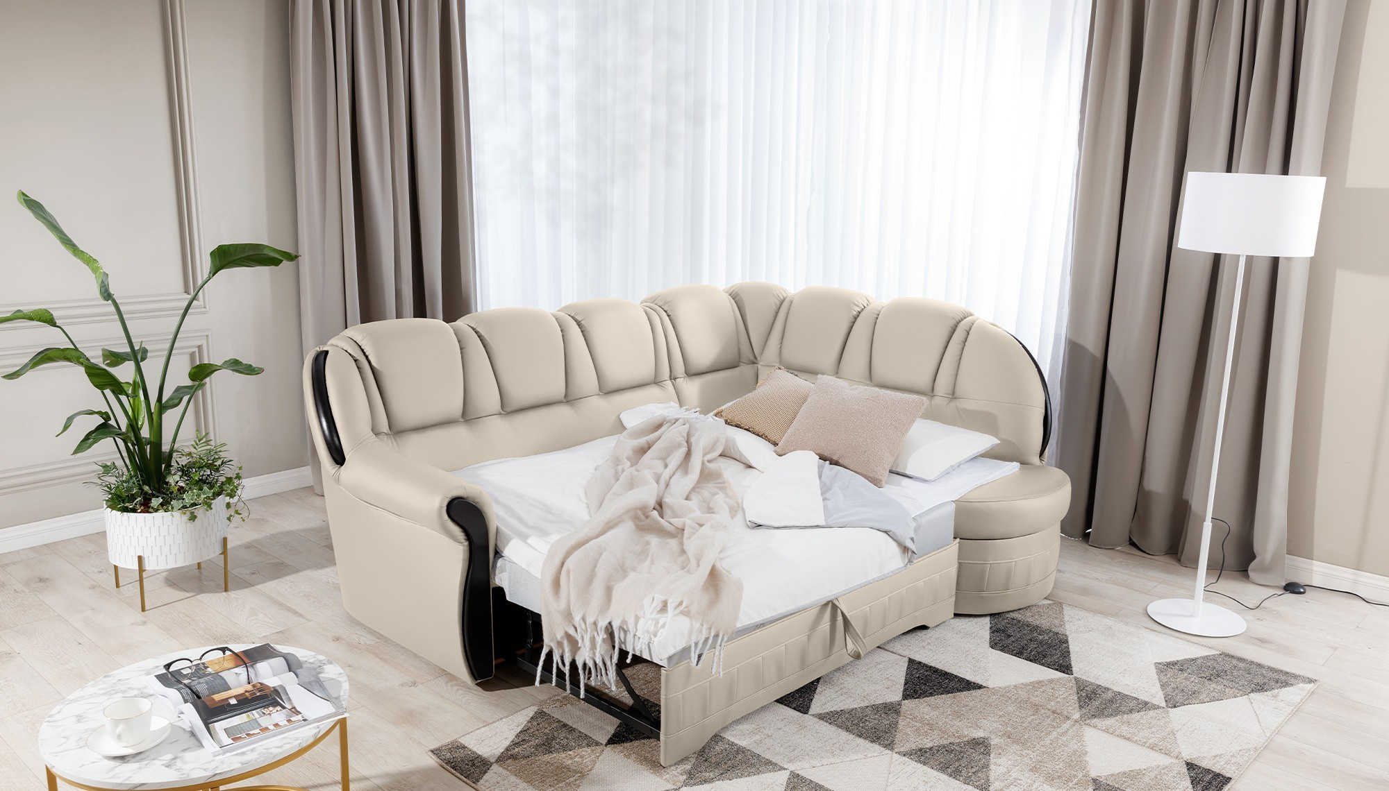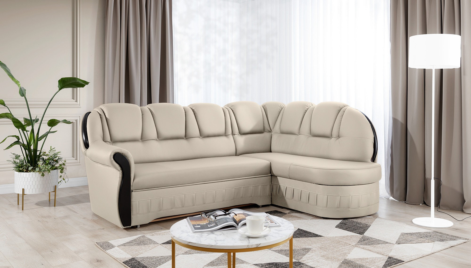Lord je elegantní a vkusná rohová pohovka, která není jen funkčním kusem nábytku, ale díky svému designu se může stát také mimořádnou ozdobou obývacího pokoje. Rozměry 243 x 180 x 105 cm zaručují velký prostor pro relaxaci během dne a díky funkci intuitivního rozkládacího systému typu delfín lze tento komfort pocítit i v noci. Prostorná spací plocha o rozměrech 195 x 125 cm vám umožní vychutnat si výjimečnou měkkost a flexibilitu sedáku našeho nábytku. To vše je díky vlnité pružině a pěně T30, ze které je roh vyroben. díky čemuž je tělo během odpočinku stabilizováno a správně podepřeno. Díky takovému použití je minimalizováno riziko vzniku nevzhledných prohlubní, poškození a oděrek, a naše tělo si vždy udržuje správnou polohu. V modelu Lord je nemožné nevěnovat pozornost: zaobleným opěradlům, pohodlným opěrkám, prostorným sedadlům, prostornému úložnému prostoru na lůžkoviny, vkusnému prošívání, jedinečnému tělu a stylu, ve kterém byl roh udržován. Určitě stojí za to mít takovou jedinečnou rohovou pohovku ve svém domově.