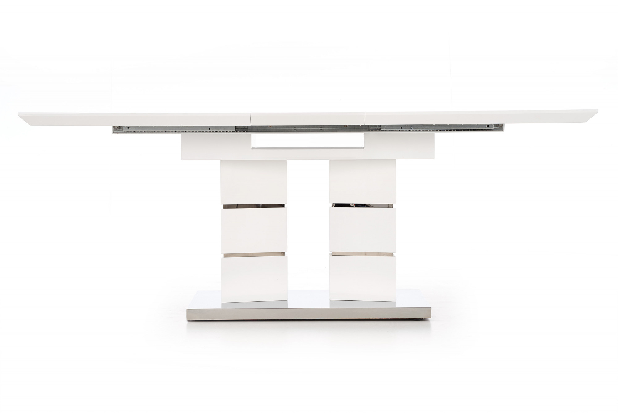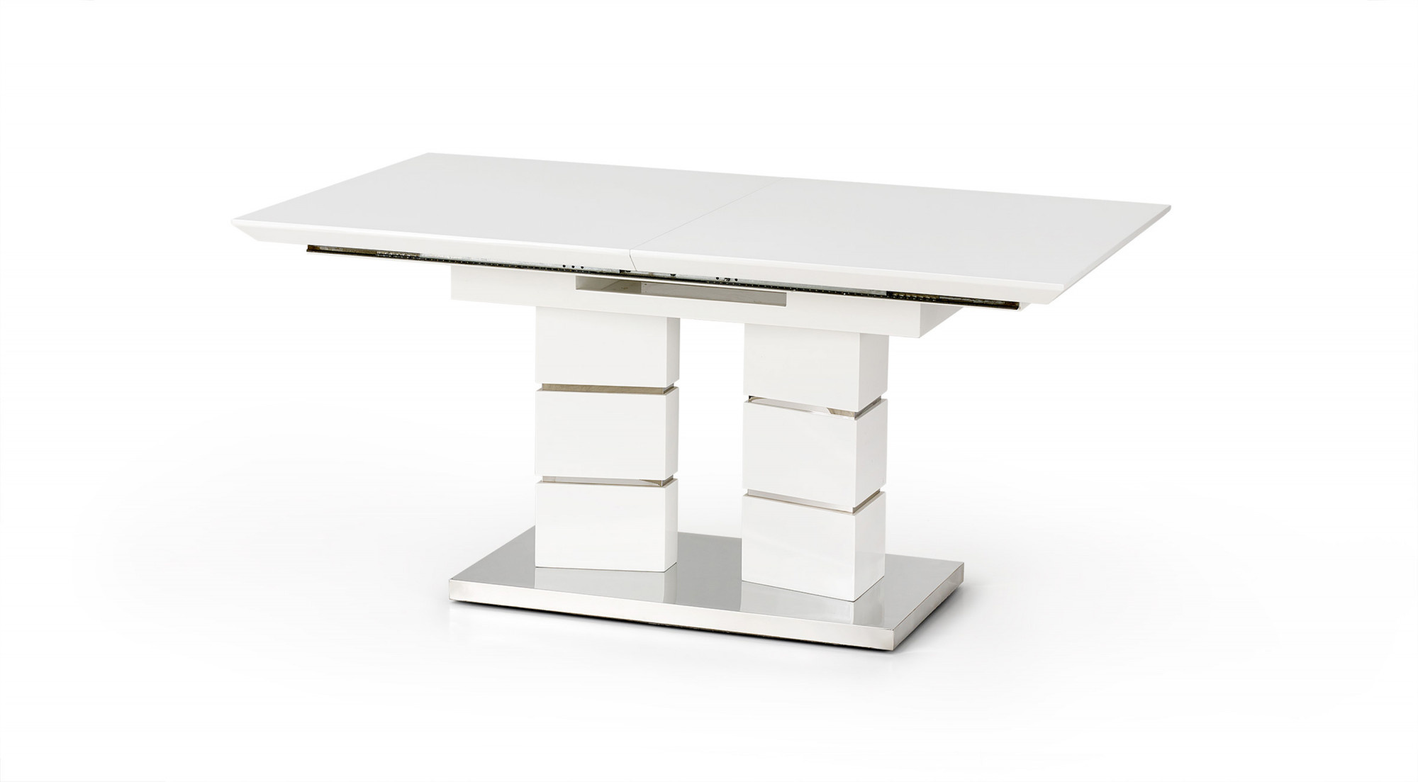 rozkládací stůl, rozměry: 160÷200/90/75 cm, materiál: MDF lakovaná / nerezová ocel, barva: bílá