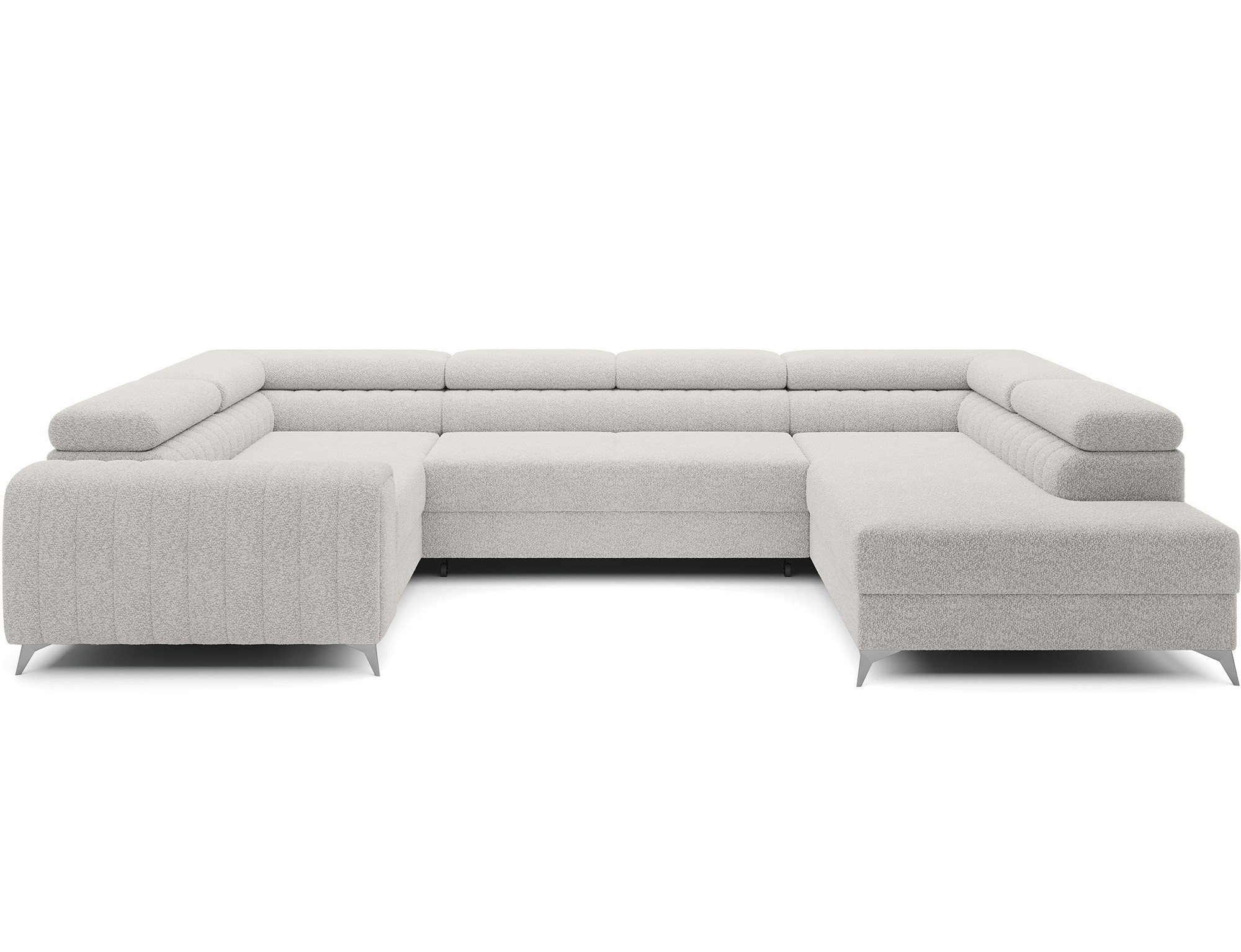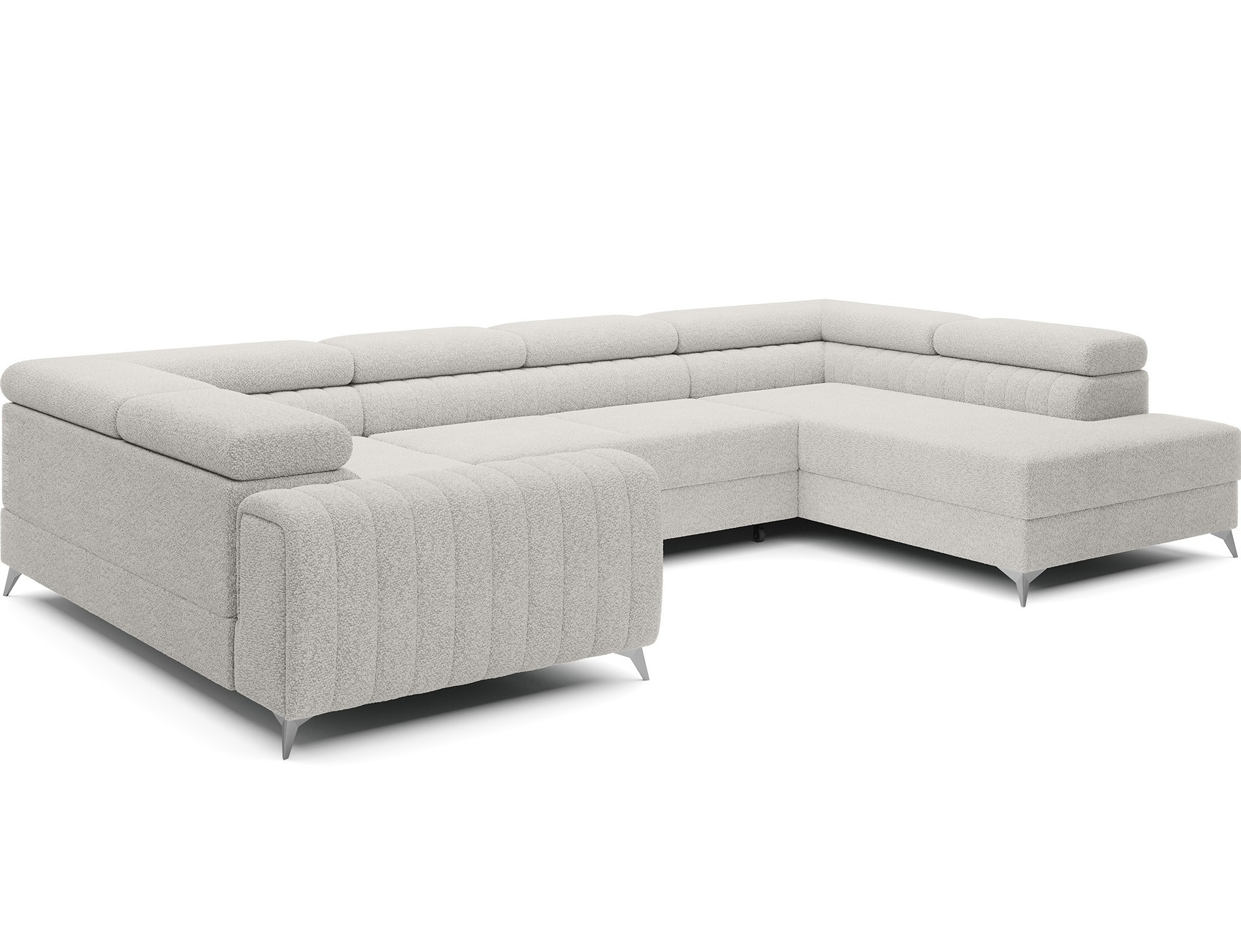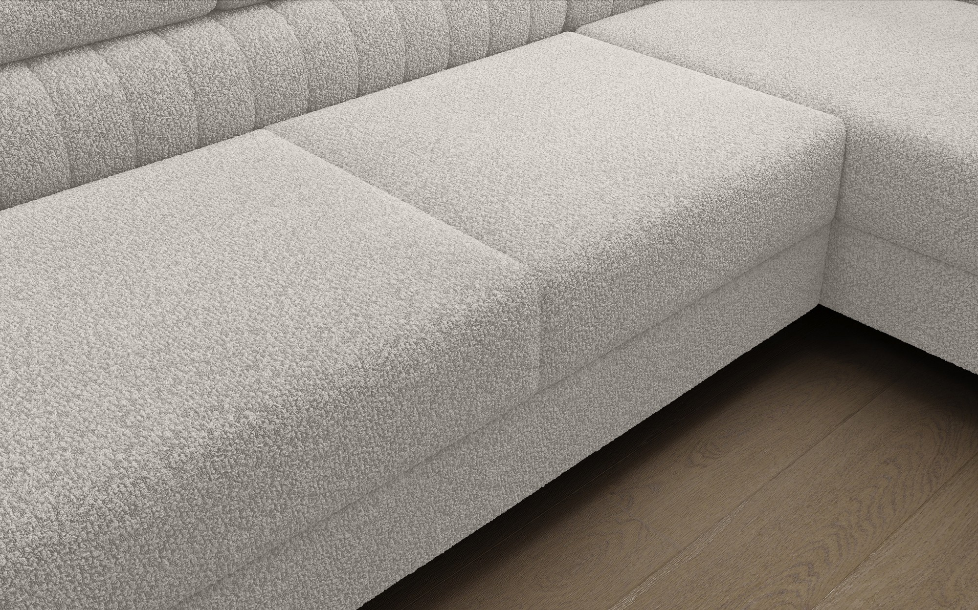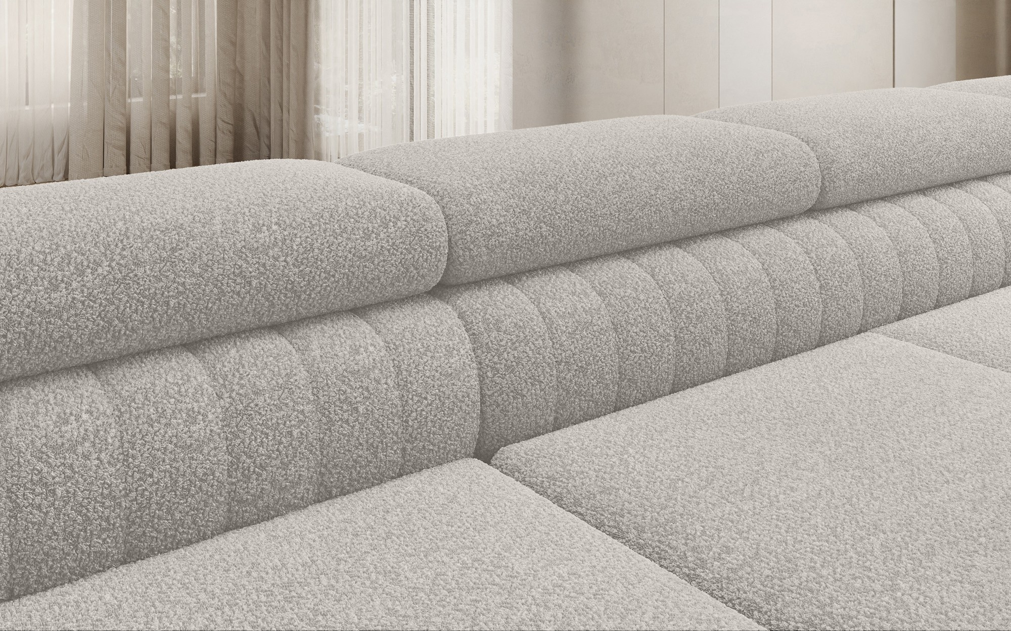 Rohová pohovka Louis je pohodlná, stylová a především funkční. Sedák se skládá z vlnových pružin a výplně z T30 a vysoce pružné HR pěny, která se dokonale přizpůsobí tělu a zvyšuje komfort. Rozměry rohové pohovky Louis — 347 x 202 x 92 cm — dále zvyšují úroveň pohodlí. Mezi jeho výhody patří čtyři nastavitelné opěrky hlavy, úložný prostor na lůžkoviny a velká spací plocha o rozměrech 254 x 123 cm. Kromě toho je mechanismus rozkládání „delfín“ použitý v tomto kusu jednoduchý a intuitivní. Můžete si také vybrat barvu čalounění rohové pohovky Louis z palety látkové kolekce Eltap. Designové nohy pohovky také stojí za zmínku — jsou vyrobeny z oceli, pochromované a vysoké, což dodává nábytku elegantní nádech. Estetické kvality jsou dále zdůrazněny vertikálním prošíváním na boku a zadní části pohovky Louis.