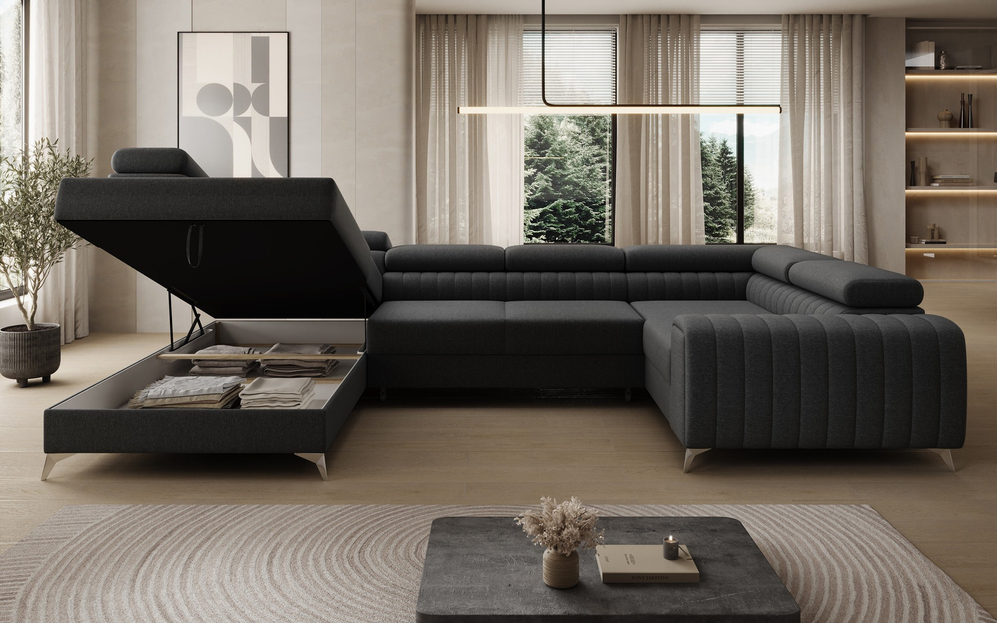Rohová sedací souprava ve tvaru U LOUIS, Sawana 14 levá