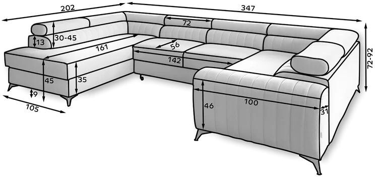 Sedací souprava LOUIS se pyšní moderním designem, který se snadno začlení do jakéhokoli interiéru. Její elegantní linie a jemný povrch dodávají prostoru nádech luxusu. S šířkou 347 cm, výškou 92 cm a hloubkou 202 cm nabízí dostatek prostoru pro celou rodinu i přátele. Výška sedu 45 cm je ideální pro pohodlné sezení, ať už relaxujete s knihou, sledujete oblíbený film nebo hostíte návštěvu.