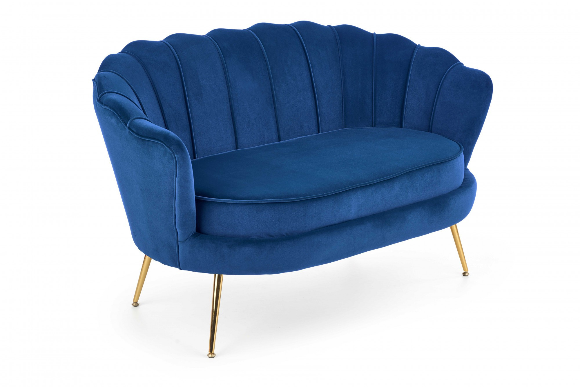 rozměry: 131/77/45 cm, materiál: látka / chromovaná ocel, barva: čalounění - tmavě modrá, nohy - zlaté