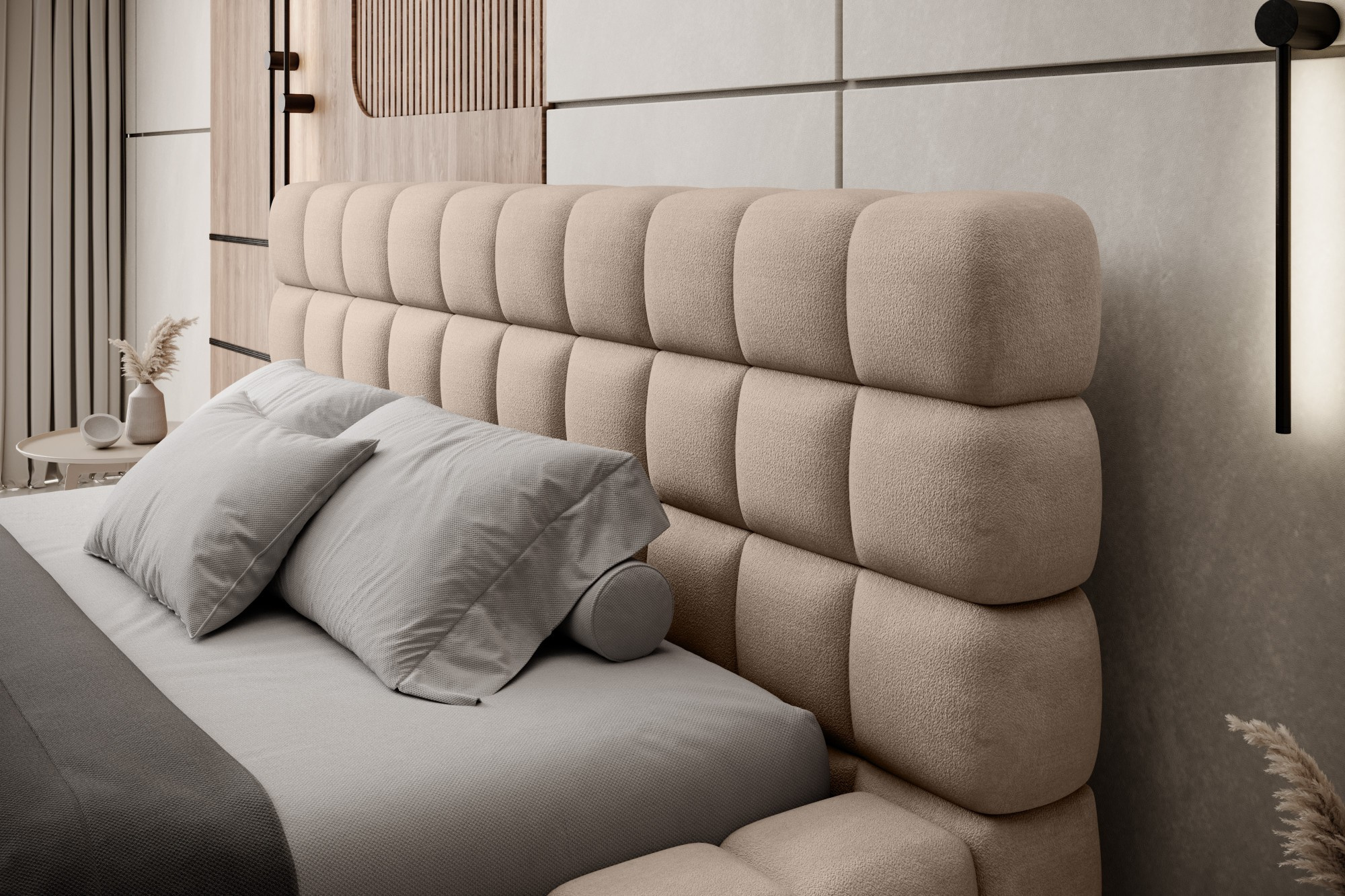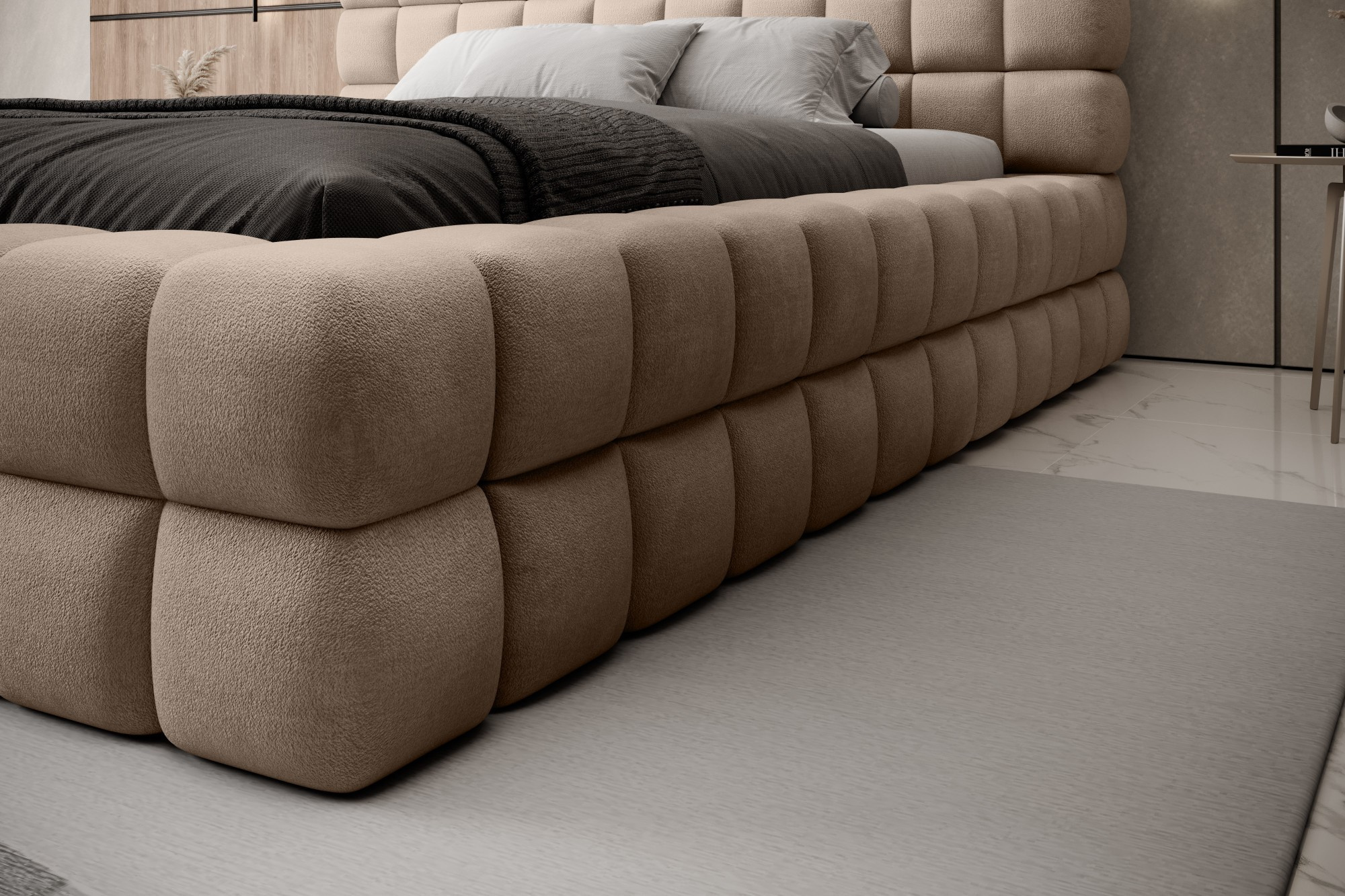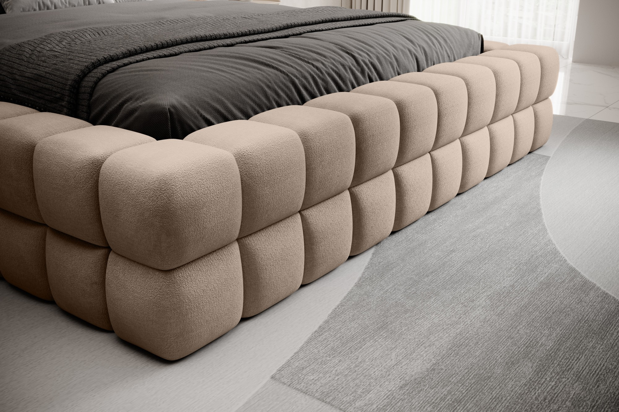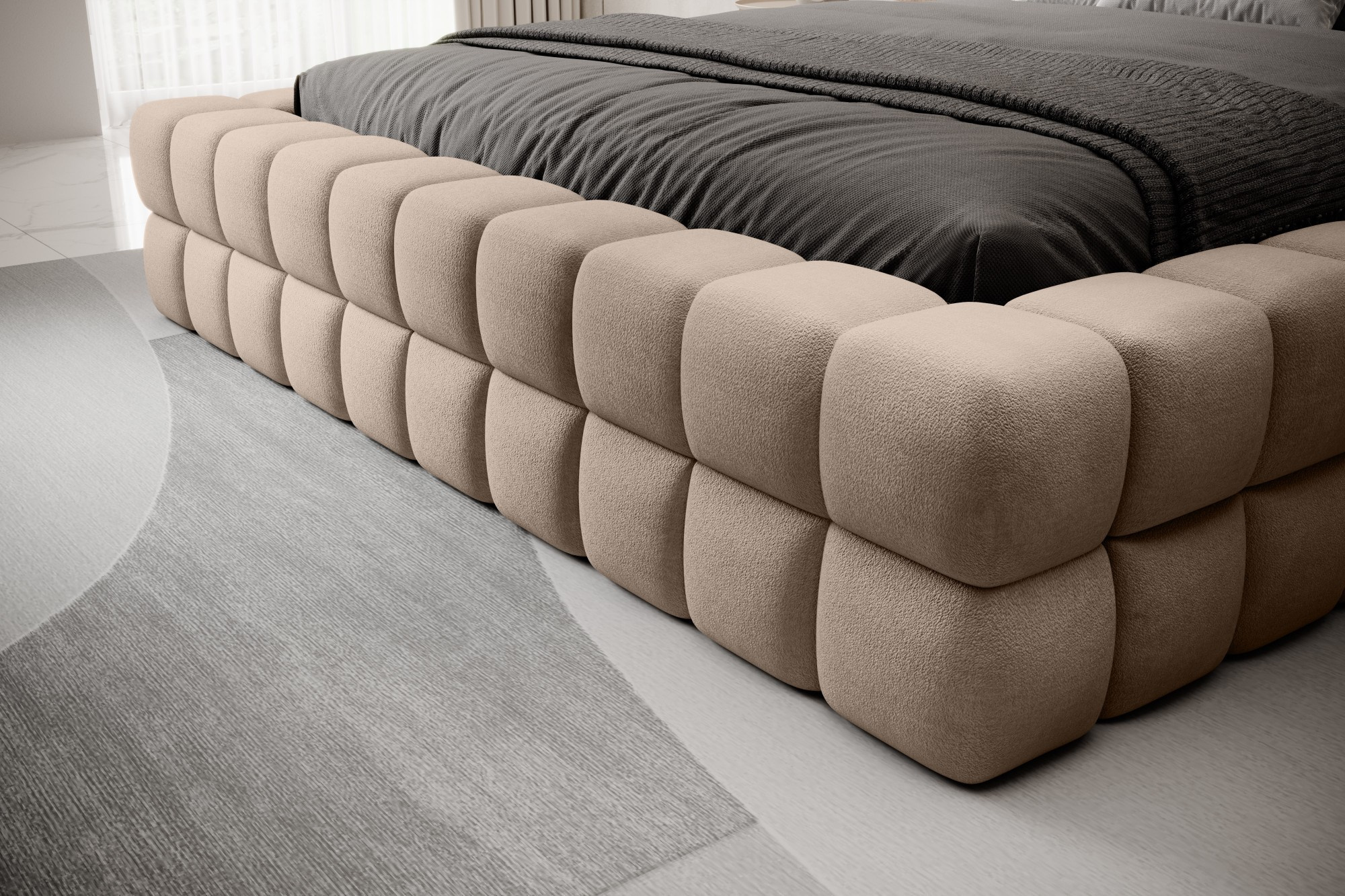 Postel Dizzle ve verzi se šířkou 140 cm je ideálním řešením pro ty, kteří si cení kompaktních rozměrů, aniž by museli slevit z pohodlí při spánku. Tato postel kombinuje moderní design s funkčností. Používá pěnu T2130, která zajišťuje pružnost a pohodlí. Se třemi různými možnostmi šířky poskytuje volba 140 cm optimální prostor pro relaxaci. Délka postele je 225 cm a její impozantní výška 104 cm jí dodává elegantní vzhled.Výška sedadla je 42 cm; nezapomeňte však přidat výšku matrace, abyste dosáhli plného pohodlí při spánku. Černé plastové nohy s výškou 2 cm zajišťují stabilitu. Kovový rám zaručuje odolnost konstrukce a jedna úložná přihrádka činí postel Dizzle 140 také praktickým místem pro uložení dalších předmětů.S 36 lamelami pro rovnoměrnou podporu matrace přináší postel Dizzle, jejíž tvar připomíná elegantní kostku, do vaší ložnice jedinečný design a pohodlnou relaxaci.