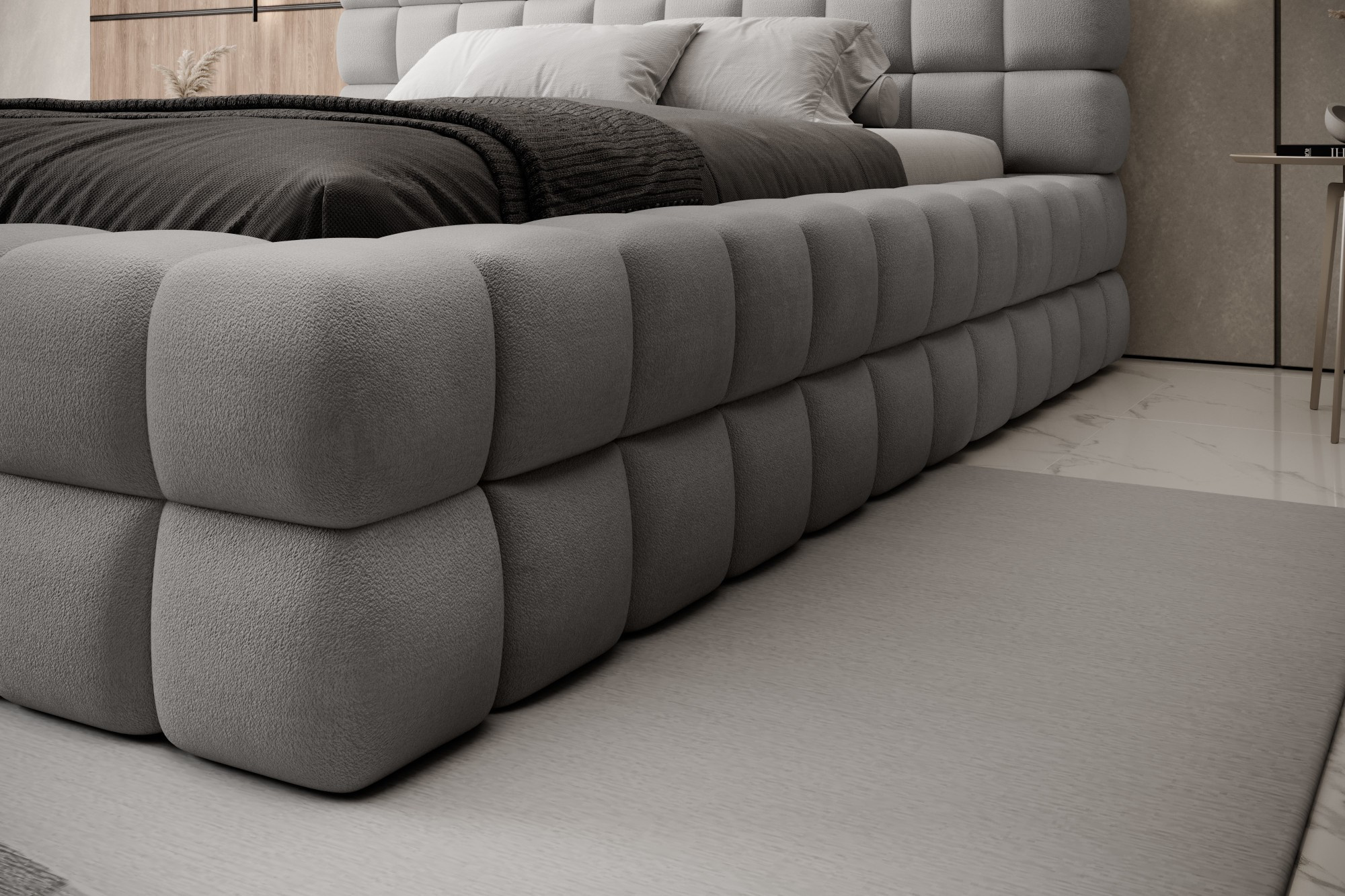 Postel Dizzle ve verzi se šířkou 140 cm je ideálním řešením pro ty, kteří si cení kompaktních rozměrů, aniž by museli slevit z pohodlí při spánku. Tato postel kombinuje moderní design s funkčností. Používá pěnu T2130, která zajišťuje pružnost a pohodlí. Se třemi různými možnostmi šířky poskytuje volba 140 cm optimální prostor pro relaxaci. Délka postele je 225 cm a její impozantní výška 104 cm jí dodává elegantní vzhled.Výška sedadla je 42 cm; nezapomeňte však přidat výšku matrace, abyste dosáhli plného pohodlí při spánku. Černé plastové nohy s výškou 2 cm zajišťují stabilitu. Kovový rám zaručuje odolnost konstrukce a jedna úložná přihrádka činí postel Dizzle 140 také praktickým místem pro uložení dalších předmětů.S 36 lamelami pro rovnoměrnou podporu matrace přináší postel Dizzle, jejíž tvar připomíná elegantní kostku, do vaší ložnice jedinečný design a pohodlnou relaxaci.