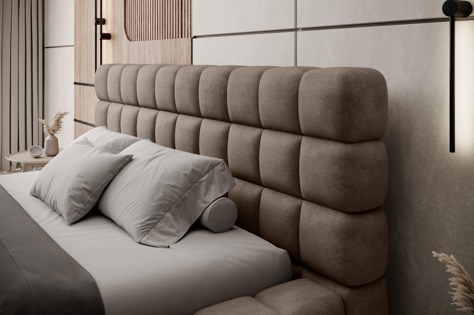 Postel Dizzle ve verzi se šířkou 160 cm je ideálním řešením pro ty, kteří hledají více prostoru na spaní, aniž by museli slevit z elegance a pohodlí. Používá pěnu T2130, která zajišťuje pružnost a jedinečné pohodlí během spánku. Se třemi různými možnostmi šířky je 160 cm ideálním řešením pro prostorný spánek. Délka postele je 225 cm a její impozantní výška 104 cm dodává celé konstrukci eleganci.Výška sedáku je 42 cm; doporučuje se však přidat výšku matrace pro dosažení plného komfortu při spánku. Černé plastové nohy s výškou 2 cm zajišťují stabilitu a snadný pohyb nábytku. Kovový rám zaručuje odolnost konstrukce a jedna úložná přihrádka činí postel Dizzle praktickým místem pro uložení dalších věcí.S 36 lamelami pro rovnoměrnou podporu matrace přináší postel Dizzle, jejíž tvar připomíná elegantní krychli, do vaší ložnice prostorný spánek, stylový design a pohodlnou relaxaci.