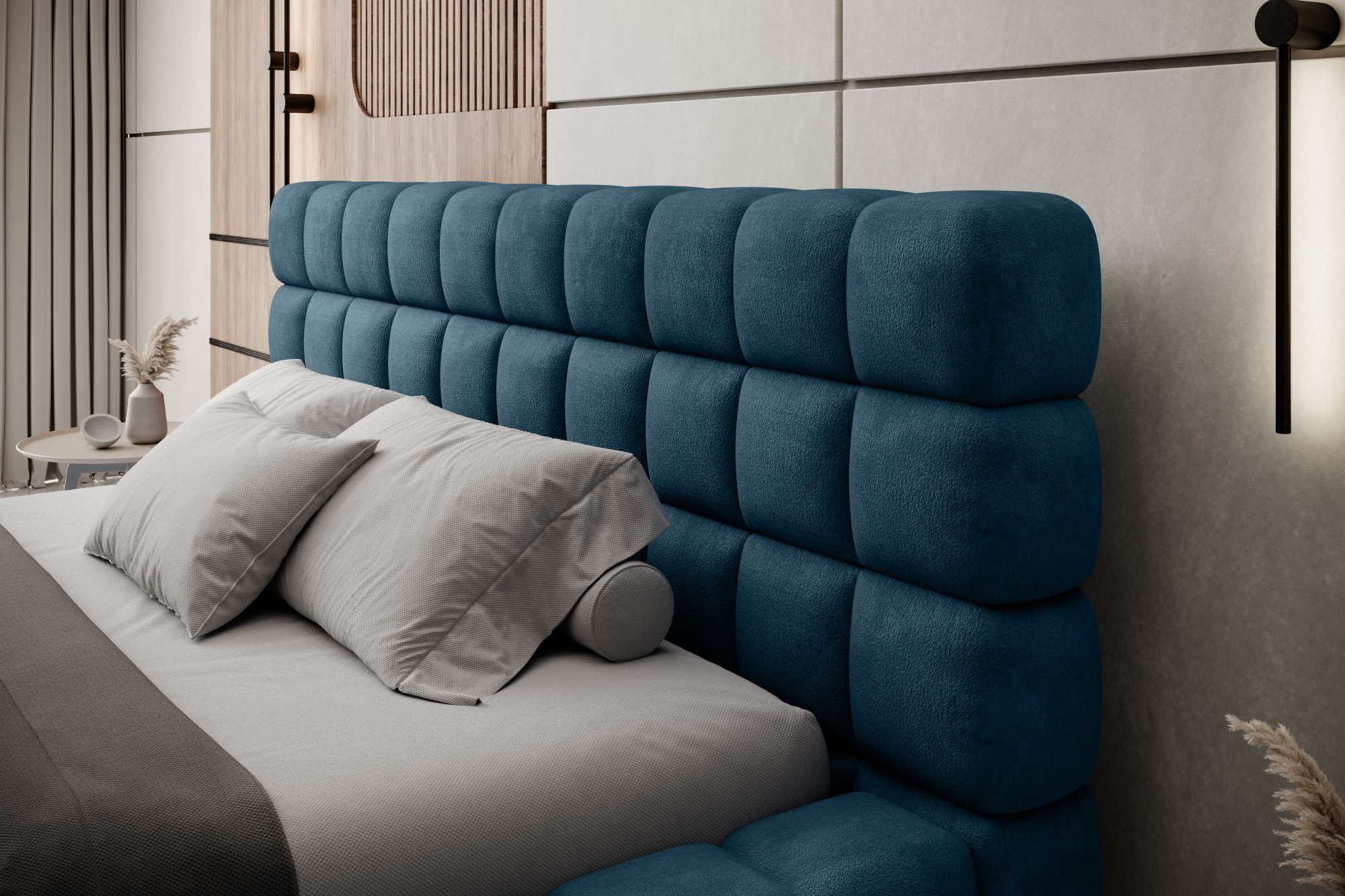 Postel Dizzle ve verzi se šířkou 160 cm je ideálním řešením pro ty, kteří hledají více prostoru na spaní, aniž by museli slevit z elegance a pohodlí. Používá pěnu T2130, která zajišťuje pružnost a jedinečné pohodlí během spánku. Se třemi různými možnostmi šířky je 160 cm ideálním řešením pro prostorný spánek. Délka postele je 225 cm a její impozantní výška 104 cm dodává celé konstrukci eleganci.Výška sedáku je 42 cm; doporučuje se však přidat výšku matrace pro dosažení plného komfortu při spánku. Černé plastové nohy s výškou 2 cm zajišťují stabilitu a snadný pohyb nábytku. Kovový rám zaručuje odolnost konstrukce a jedna úložná přihrádka činí postel Dizzle praktickým místem pro uložení dalších věcí.S 36 lamelami pro rovnoměrnou podporu matrace přináší postel Dizzle, jejíž tvar připomíná elegantní krychli, do vaší ložnice prostorný spánek, stylový design a pohodlnou relaxaci.