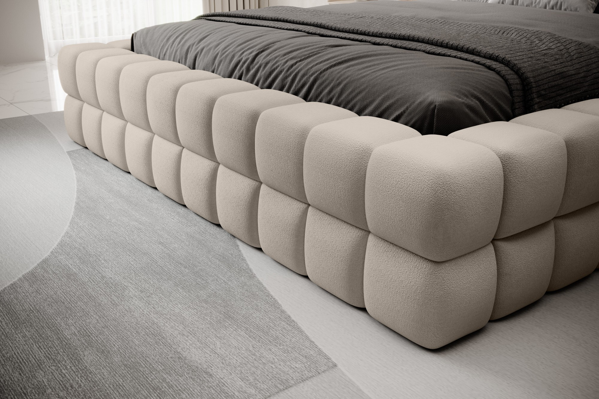 Postel Dizzle ve verzi se šířkou 160 cm je ideálním řešením pro ty, kteří hledají více prostoru na spaní, aniž by museli slevit z elegance a pohodlí. Používá pěnu T2130, která zajišťuje pružnost a jedinečné pohodlí během spánku. Se třemi různými možnostmi šířky je 160 cm ideálním řešením pro prostorný spánek. Délka postele je 225 cm a její impozantní výška 104 cm dodává celé konstrukci eleganci.Výška sedáku je 42 cm; doporučuje se však přidat výšku matrace pro dosažení plného komfortu při spánku. Černé plastové nohy s výškou 2 cm zajišťují stabilitu a snadný pohyb nábytku. Kovový rám zaručuje odolnost konstrukce a jedna úložná přihrádka činí postel Dizzle praktickým místem pro uložení dalších věcí.S 36 lamelami pro rovnoměrnou podporu matrace přináší postel Dizzle, jejíž tvar připomíná elegantní krychli, do vaší ložnice prostorný spánek, stylový design a pohodlnou relaxaci.