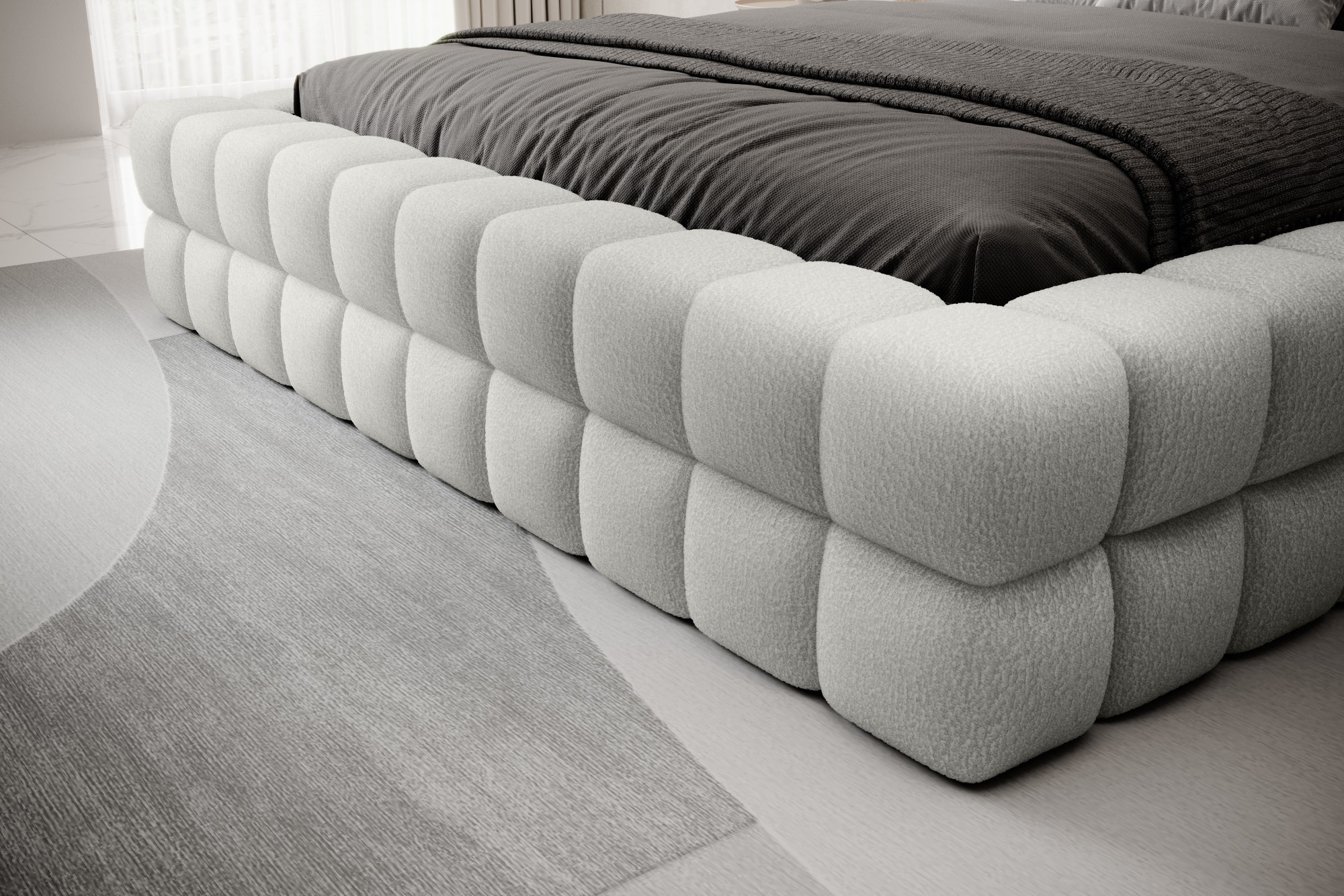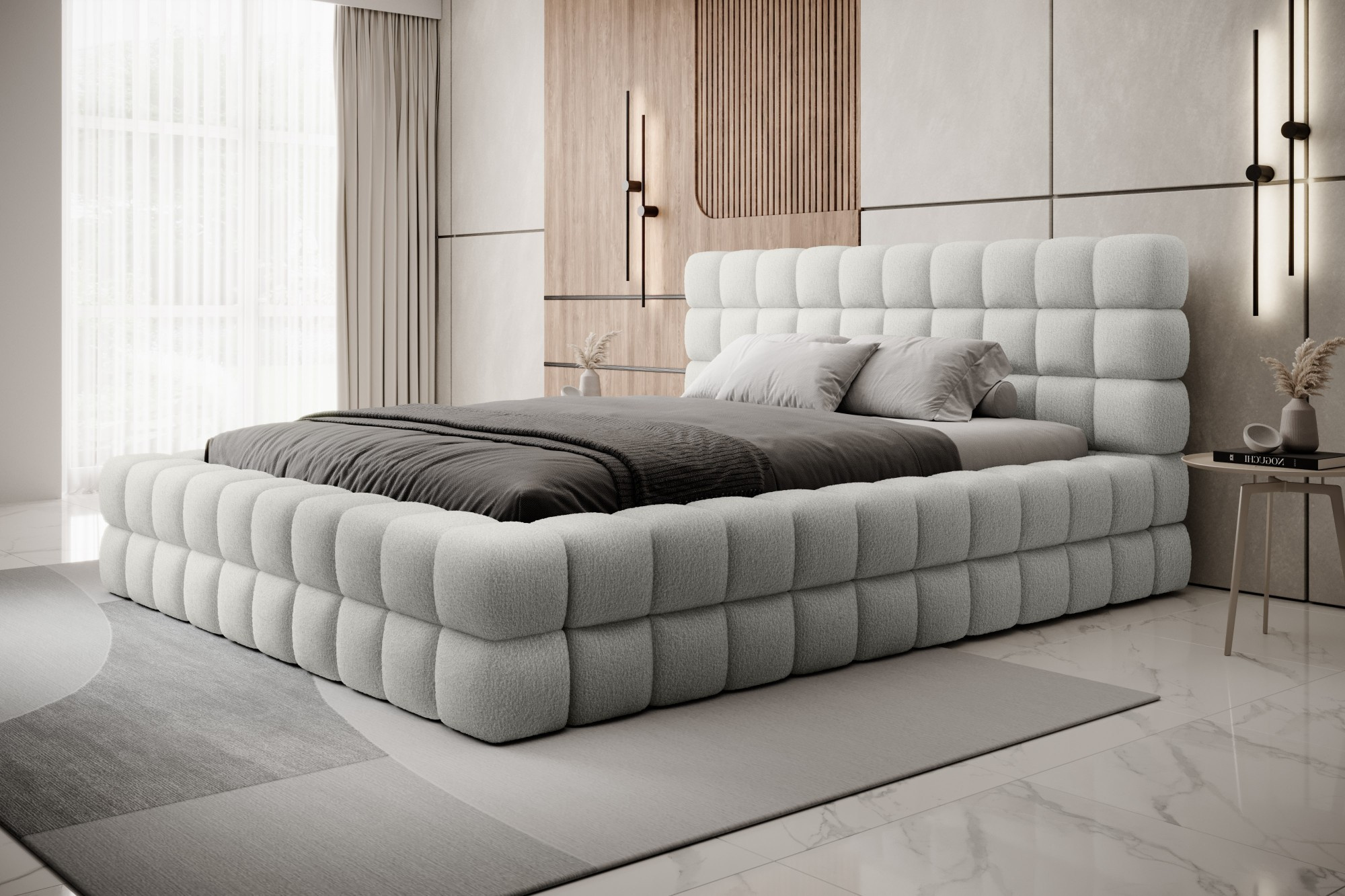 Postel Dizzle ve verzi s impozantní šířkou 180 cm je ideálním řešením pro ty, kteří touží po ještě větším prostoru pro spánek, aniž by obětovali eleganci a pohodlí. Využívá pěnu T2130, která poskytuje pružnost a jedinečný spánkový komfort. Se třemi různými možnostmi šířky je 180 cm návrhem pro nadšence prostornosti. Délka postele je 225 cm a její impozantní výška 104 cm dodává celé konstrukci eleganci.Výška sedáku je 42 cm; doporučuje se však přidat výšku matrace pro plný komfort při používání. Černé plastové nohy s výškou 2 cm zajišťují stabilitu. Kovový rám zaručuje odolnost konstrukce a jedna úložná přihrádka činí postel Dizzle 180 praktickým místem pro uložení dalších věcí.S 36 lamelami pro rovnoměrnou podporu matrace přináší postel Dizzle, jejíž tvar připomíná elegantní kostku, do vaší ložnice nejen prostornost, ale také stylový design a pohodlnou relaxaci.