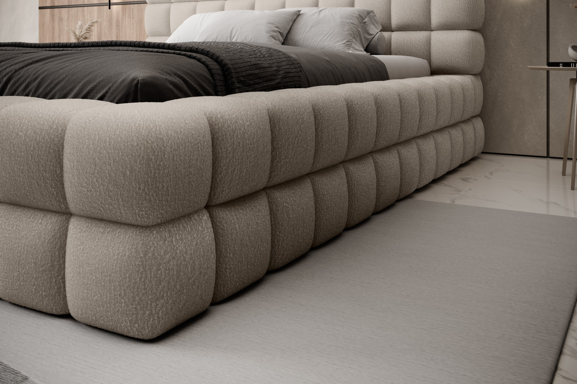 Postel Dizzle ve verzi s impozantní šířkou 180 cm je ideálním řešením pro ty, kteří touží po ještě větším prostoru pro spánek, aniž by obětovali eleganci a pohodlí. Využívá pěnu T2130, která poskytuje pružnost a jedinečný spánkový komfort. Se třemi různými možnostmi šířky je 180 cm návrhem pro nadšence prostornosti. Délka postele je 225 cm a její impozantní výška 104 cm dodává celé konstrukci eleganci.Výška sedáku je 42 cm; doporučuje se však přidat výšku matrace pro plný komfort při používání. Černé plastové nohy s výškou 2 cm zajišťují stabilitu. Kovový rám zaručuje odolnost konstrukce a jedna úložná přihrádka činí postel Dizzle 180 praktickým místem pro uložení dalších věcí.S 36 lamelami pro rovnoměrnou podporu matrace přináší postel Dizzle, jejíž tvar připomíná elegantní kostku, do vaší ložnice nejen prostornost, ale také stylový design a pohodlnou relaxaci.