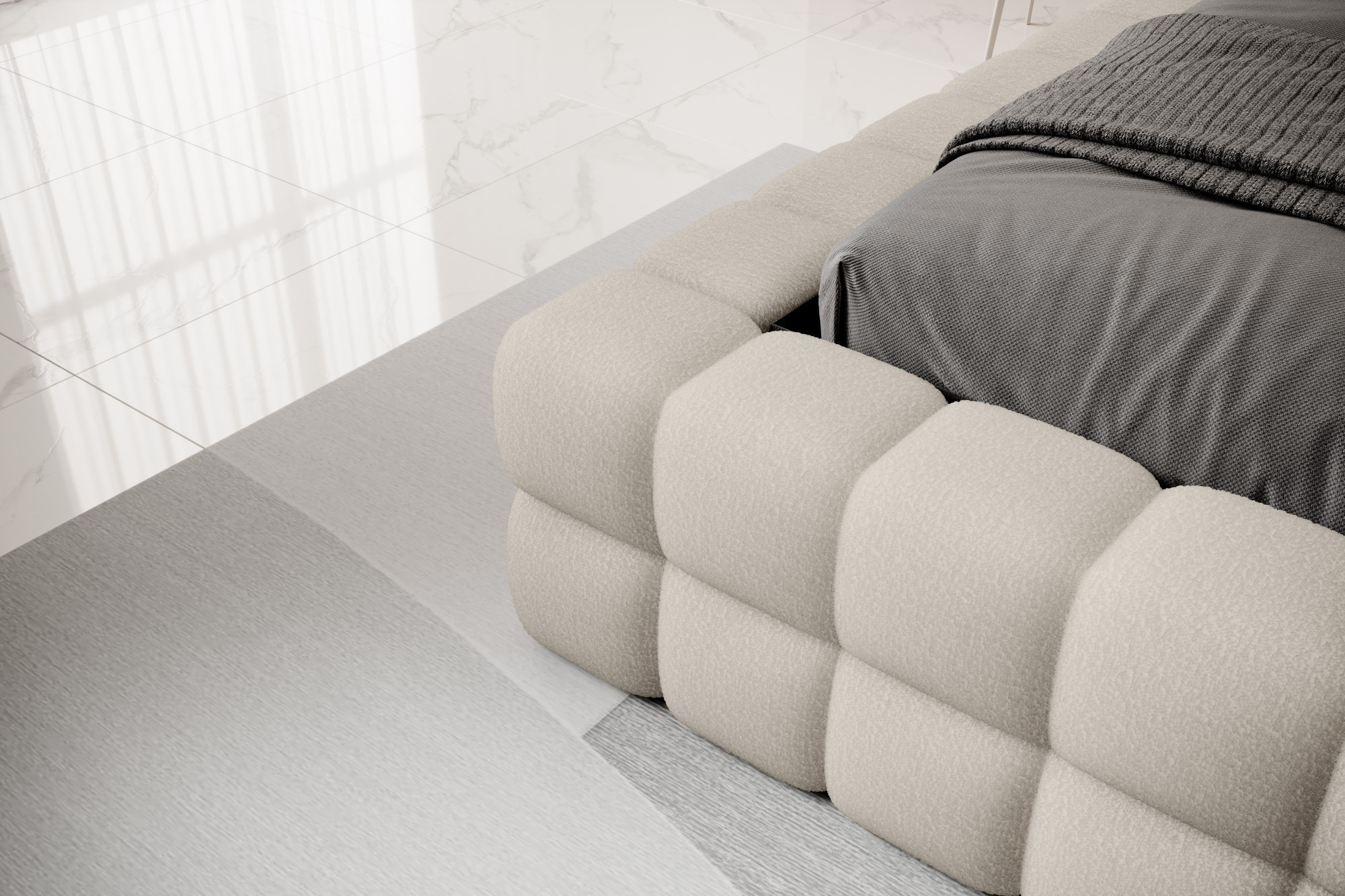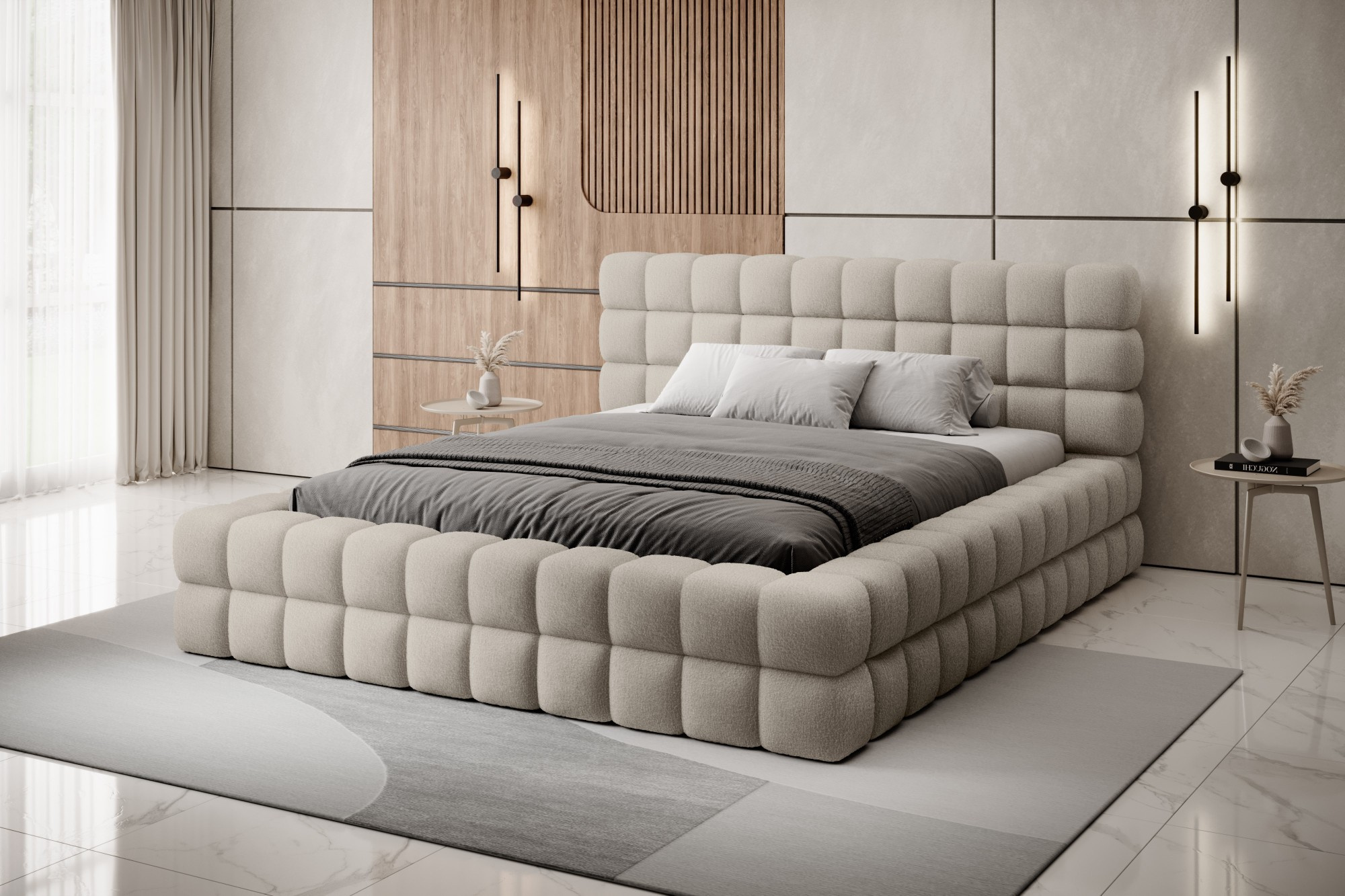 Postel Dizzle ve verzi s impozantní šířkou 180 cm je ideálním řešením pro ty, kteří touží po ještě větším prostoru pro spánek, aniž by obětovali eleganci a pohodlí. Využívá pěnu T2130, která poskytuje pružnost a jedinečný spánkový komfort. Se třemi různými možnostmi šířky je 180 cm návrhem pro nadšence prostornosti. Délka postele je 225 cm a její impozantní výška 104 cm dodává celé konstrukci eleganci.Výška sedáku je 42 cm; doporučuje se však přidat výšku matrace pro plný komfort při používání. Černé plastové nohy s výškou 2 cm zajišťují stabilitu. Kovový rám zaručuje odolnost konstrukce a jedna úložná přihrádka činí postel Dizzle 180 praktickým místem pro uložení dalších věcí.S 36 lamelami pro rovnoměrnou podporu matrace přináší postel Dizzle, jejíž tvar připomíná elegantní kostku, do vaší ložnice nejen prostornost, ale také stylový design a pohodlnou relaxaci.