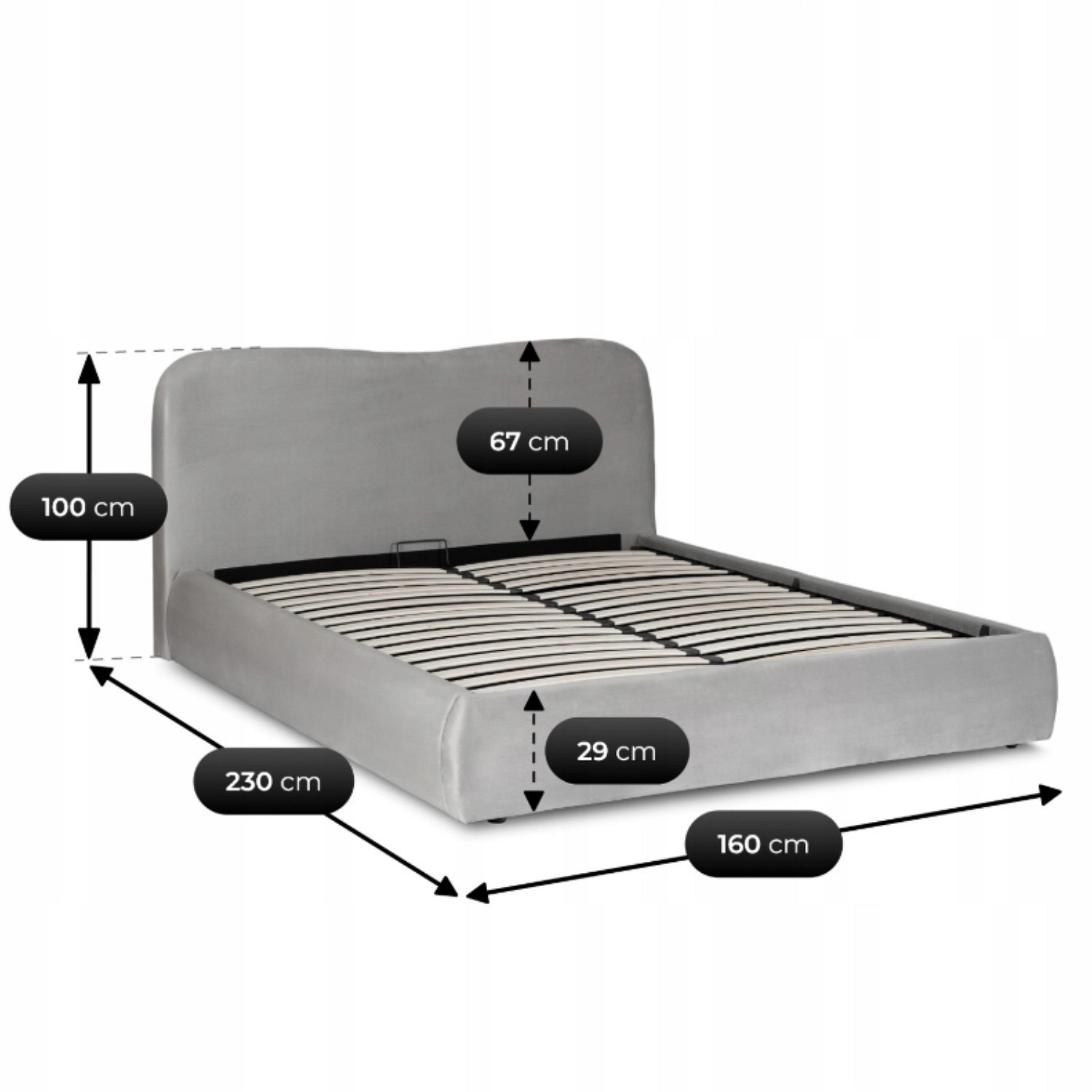 Postel 140x200 BRISTOL s Úložným Prostorem Šedý Samet
