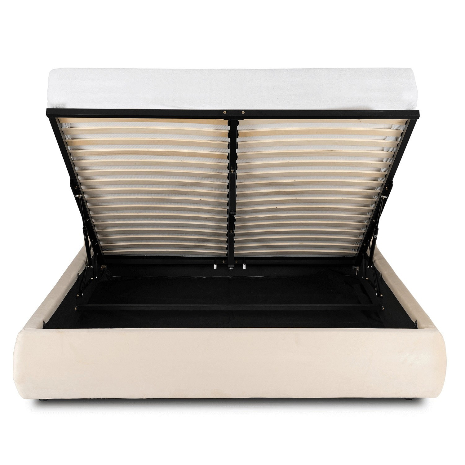 Postel 160x200 HAGA s Úložným Prostorem Krémová Sametová