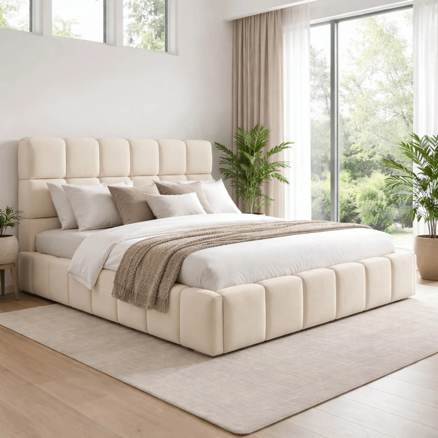 Postel 160x200 MURCJA s Úložným Prostorem Krémová Sametová