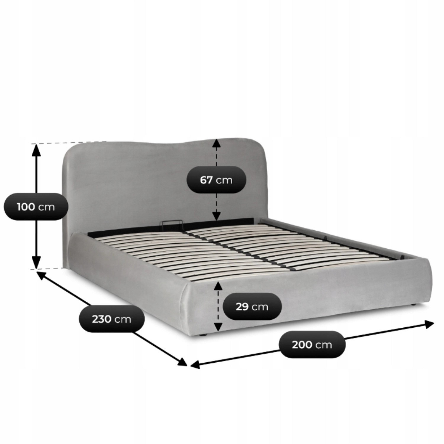 Postel 180x200 BRISTOL s Úložným Prostorem Šedá Sametová