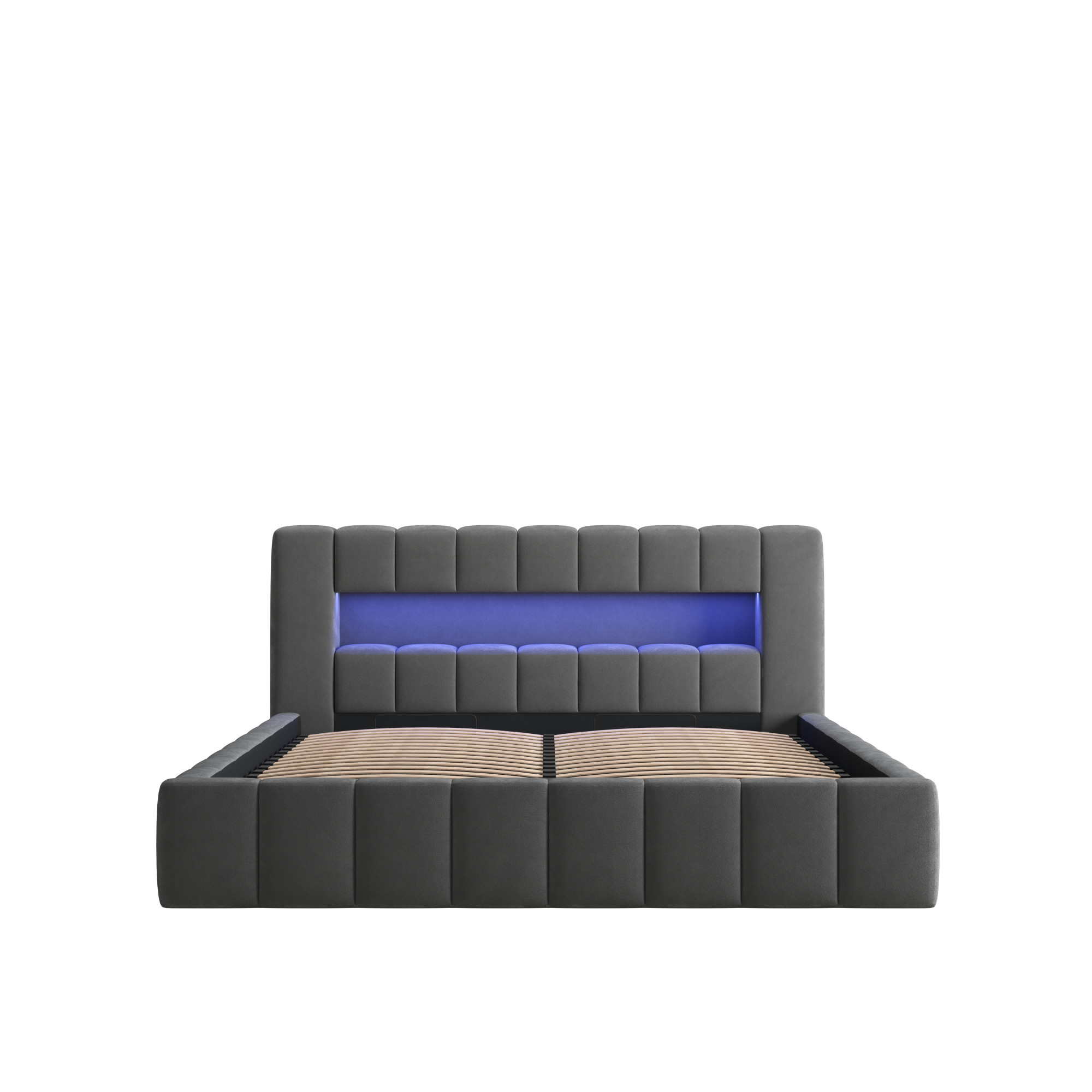 Délka: 230 cm Výška čela: 90 cm Výška sedáku: 30 cm Plocha na spaní: 180/200 cm Postel má kovový rám, LED osvětlení a úložný prostor na ložní prádlo