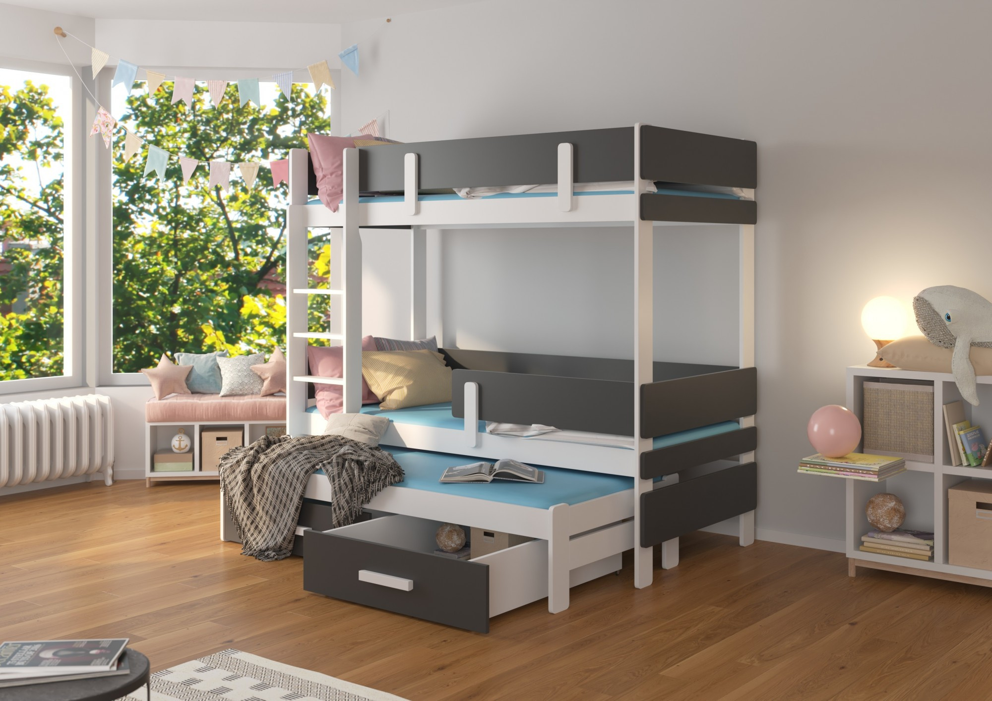 Třílůžková patrová postel ETAPO 200x90 Bílá+Antracit