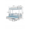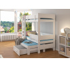 Patrová 3lůžková postel ETAPO je skvělý nápad na úsporu místa v malém dětském pokoji. Nábytek obsahuje schůdkový žebřík a dvě prostorné a funkční zásuvky na ložní prádlo. Navíc na dvou úrovních byly namontovány zábradlí zvyšující bezpečnost během spánku. Spolu s postelí obdržíte sadu tří pěnových matrací o tloušťce 8 cm.