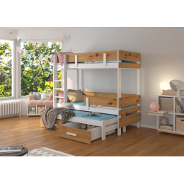 Třílůžková patrová postel s matracemi ETAPO 180x80 Bílá+Artisan