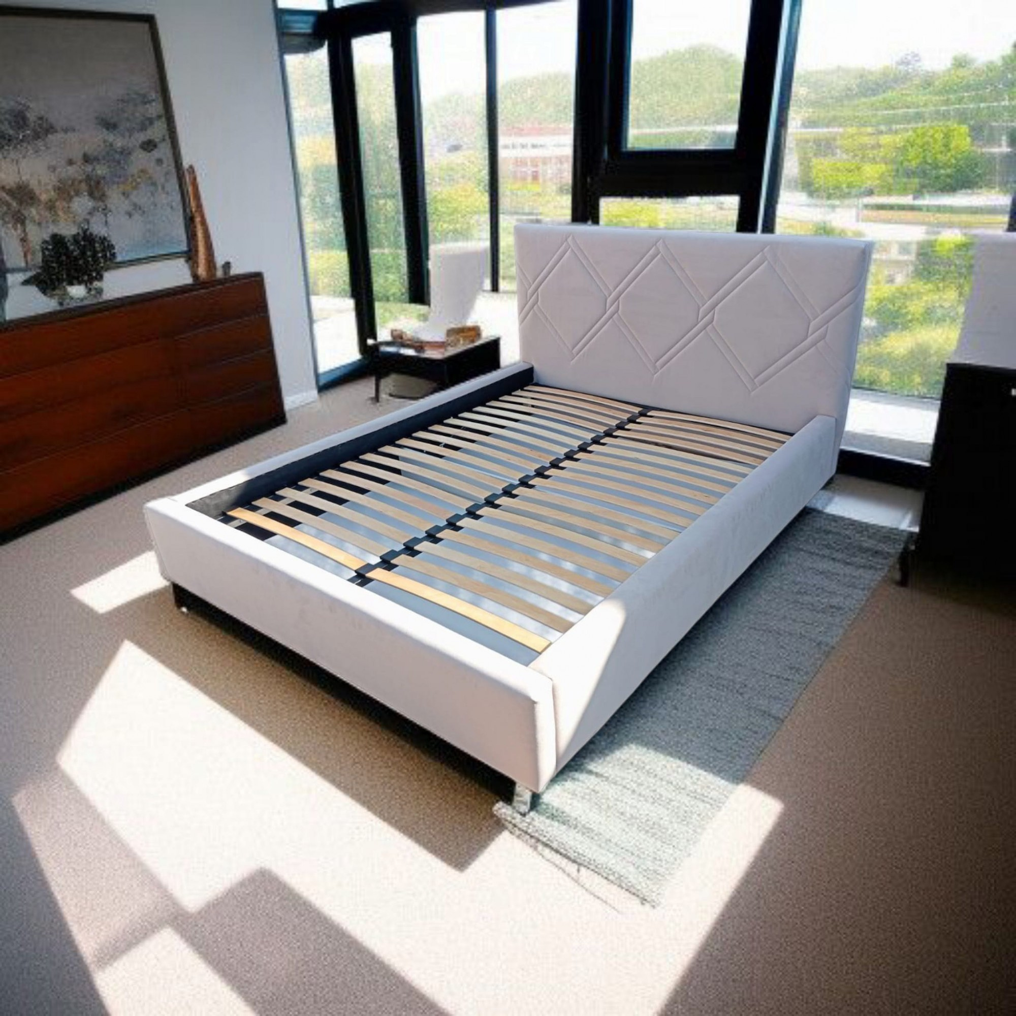 Postel Verona o rozměru 180x200 je kombinací moderního designu, pohodlí a praktických řešení. Geometrický vzor čela a boků přitahuje pozornost, dodávajíc interiéru jedinečný charakter. Konstrukce je vyrobena z nejkvalitnější desky a dřeva, čelo a boky jsou pokryty měkkou pěnou T30 a vnitřek a zadní část čela jsou dokončeny wigofilem, což zvyšuje estetiku nábytku i ze strany stěny. Postel je vybavena kovovým rámem s funkcí zvedání na plynových vzpěrách a praktickým úložným prostorem na ložní prádlo, matraci lze dokoupit samostatně. Celkové rozměry: plocha na spaní: 180 × 200 cm výška čela: 110 cm výška boků: 35 cm šířka: 195 cm délka: 215 cm Postel Verona 180x200 je ideální volbou pro ty, kteří si cení pohodlí, stylu a funkčnosti, a vytváří elegantní a praktickou ložnici.