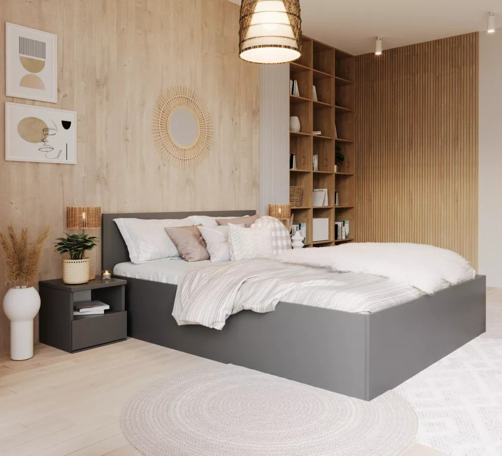 manželská postel HAVANA Jednolůžková postel HAVANA je odolný a pevný kus nábytku inspirovaný skandinávským stylem. Má kovový zvedací rám s odpruženými březovými rošty. Každý rošt je uložen v plastové kapse, takže postel nevrzá. Rám je podepřen zvedacím mechanismem s plynovými válci.