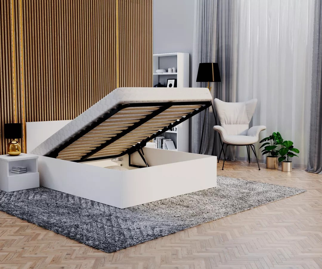 manželská postel HAVANA Jednolůžková postel HAVANA je odolný a pevný kus nábytku inspirovaný skandinávským stylem. Má kovový zvedací rám s odpruženými březovými rošty. Každý rošt je uložen v plastové kapse, takže postel nevrzá. Rám je podepřen zvedacím mechanismem s plynovými válci.