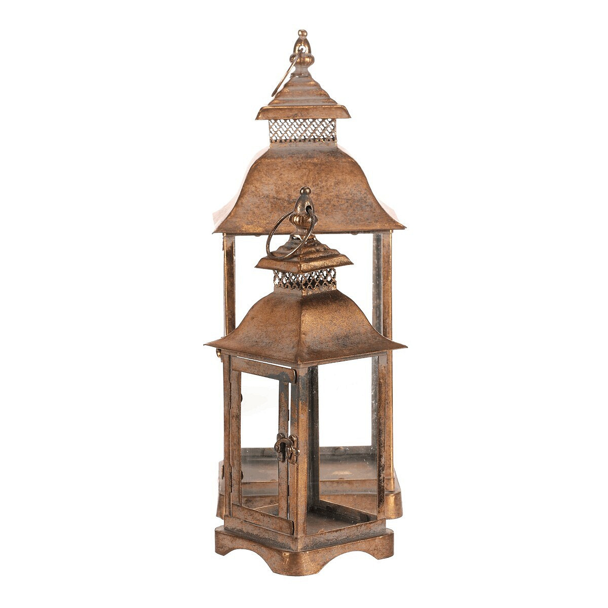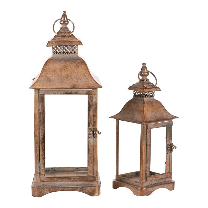 Elegantní čtyřboké lucerny v kovovém zlatém provedení s čirými skly dodají vašemu domovu hřejivou atmosféru. Díky starožitnému vzhledu působí stylově a lze je postavit nebo zavěsit. Sada obsahuje 2 odlišně velké kusy, které skvěle doplní interiér nebo venkovní prostor.