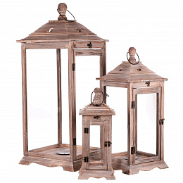 Lucerna dřevěná, barva hnědá, sada 3 kusy