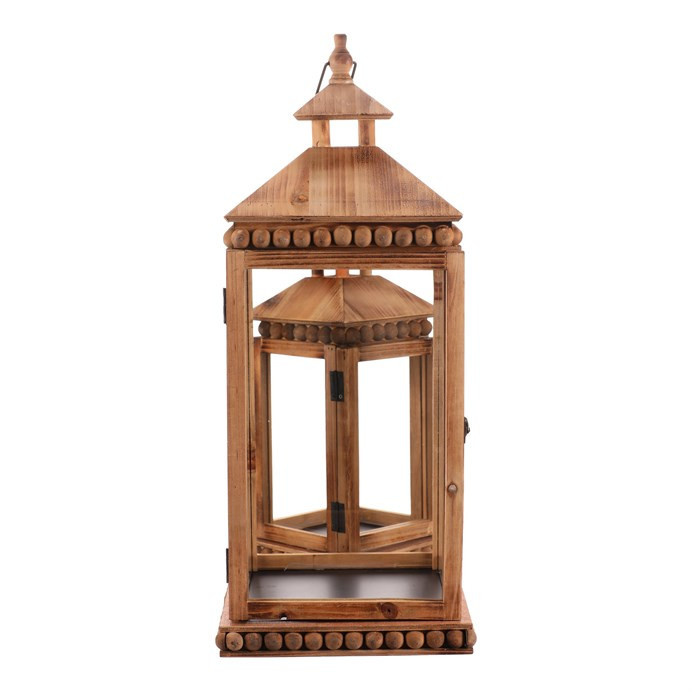 Dodejte svému interiéru nádech venkovského kouzla s touto dřevěnou lucernou v přírodní hnědé barvě. Čtyřboký design s velkými čirými skly nechá vyniknout světlu svíčky, ať už lucernu pověsíte, nebo postavíte na stůl či polici. Sada dvou různých velikostí nabízí variabilitu a skvěle se hodí k vytvoření harmonického světelného aranžmá, které zútulní každý kout domova.