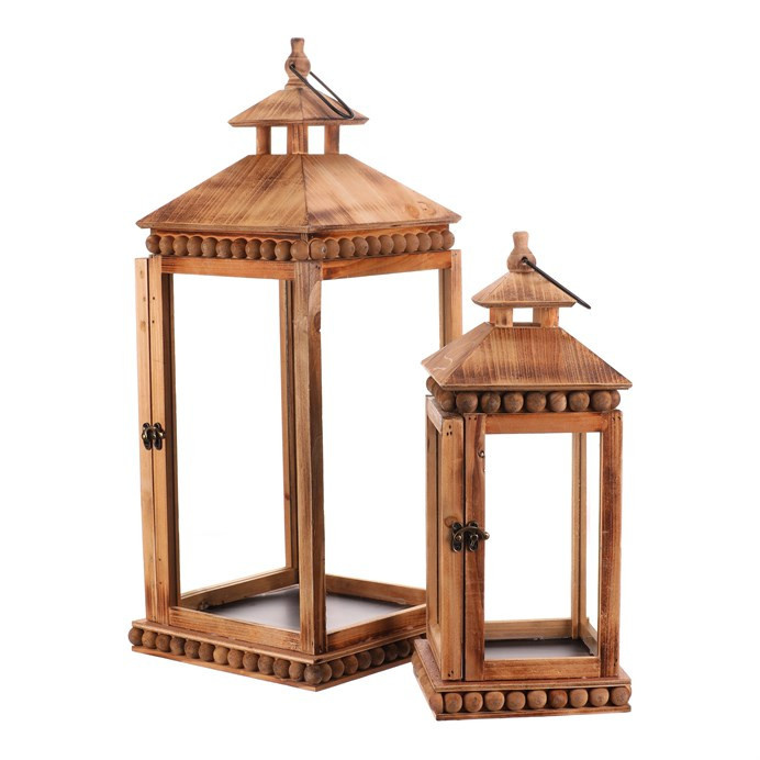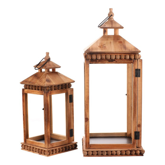 Lucerna dřevěná - čtyřboká, cena za sadu 2 ks