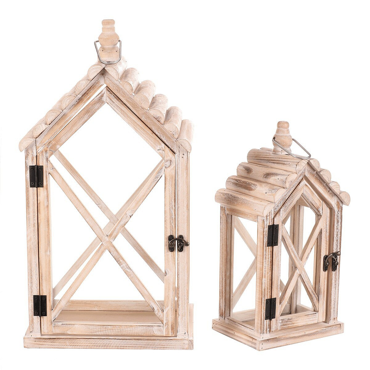 Lucerna dřevěná - tvar domku, cena za sadu 2 ks