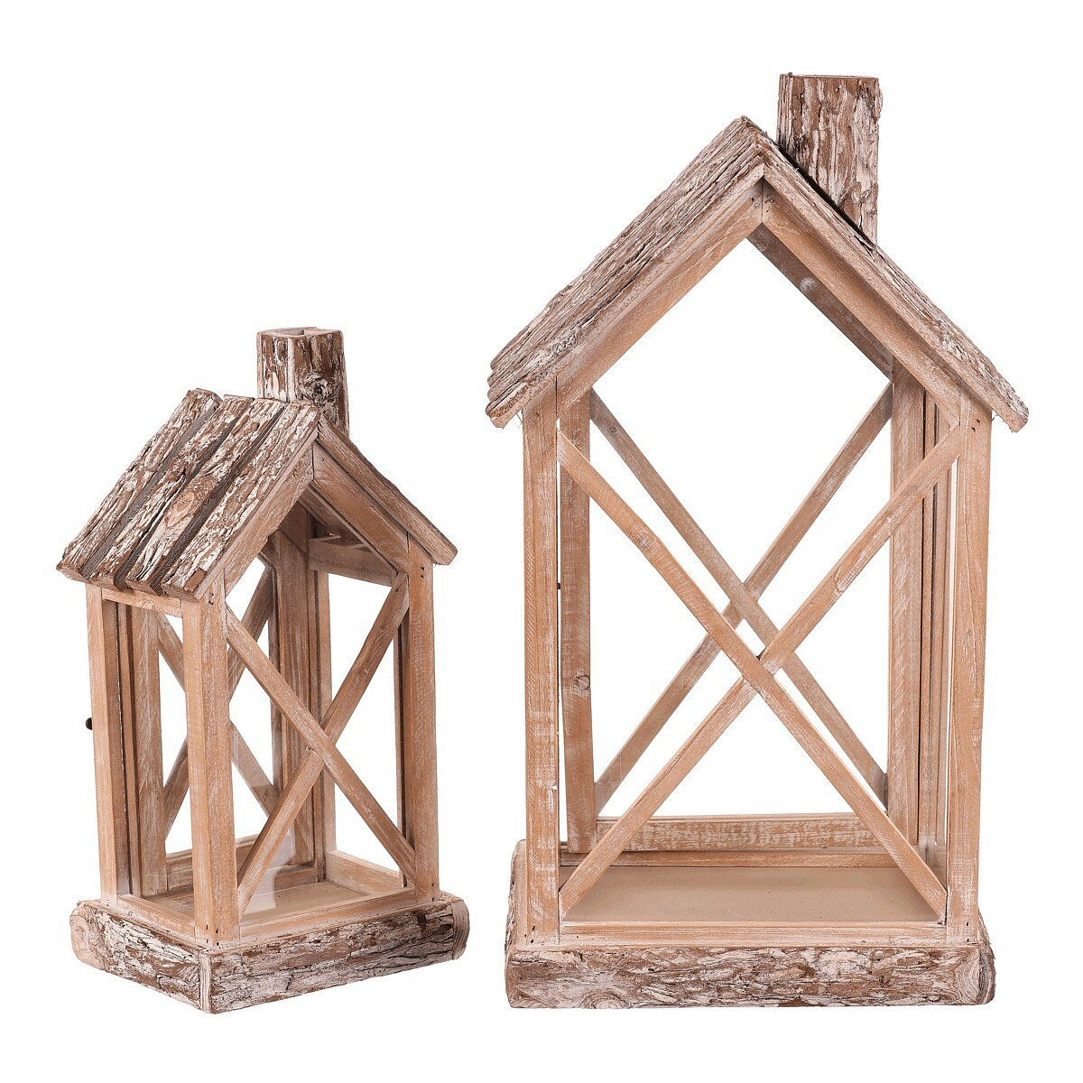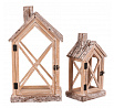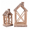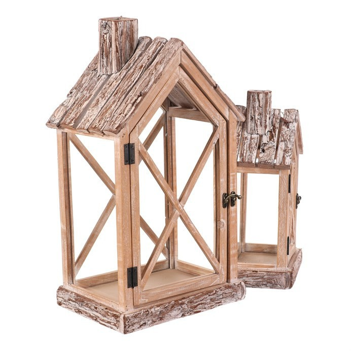 Lucerna dřevěná - tvar domku s komínem, cena za sadu 2 ks