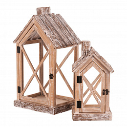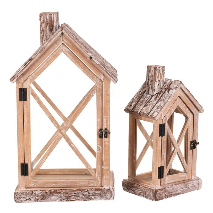 Dřevěná lucerna v sadě 2 velikostí ve tvaru domku s komínkem vnese do vašeho domova pohádkové zimní kouzlo. Přírodní barva dřeva s jeho jedinečnou texturou dodává lucerně jedinečný rustikální nádech. Po vložení svíčky tak vytvoříte neodolatelnou hru světla a stínů.