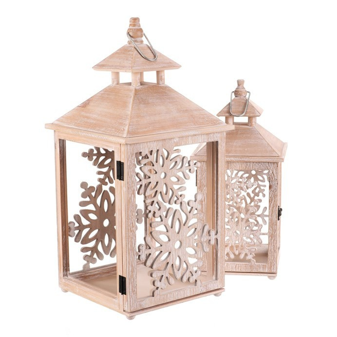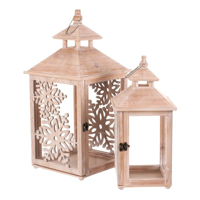 Lucerna dřevěná - vzor sněh. vloček, cena za sadu 2 ks