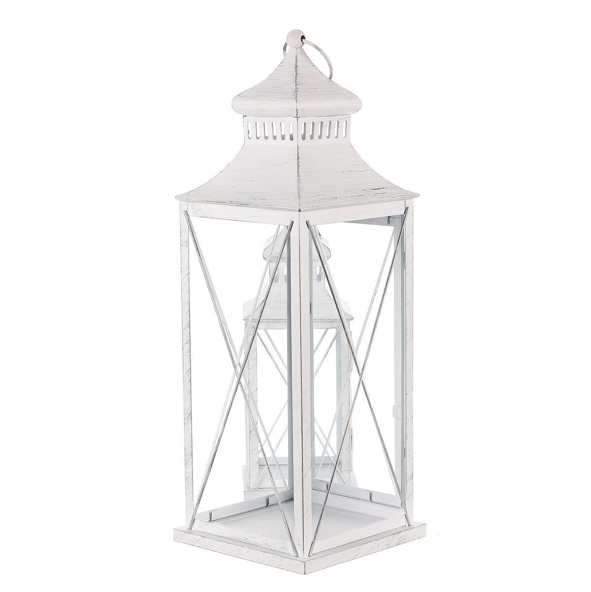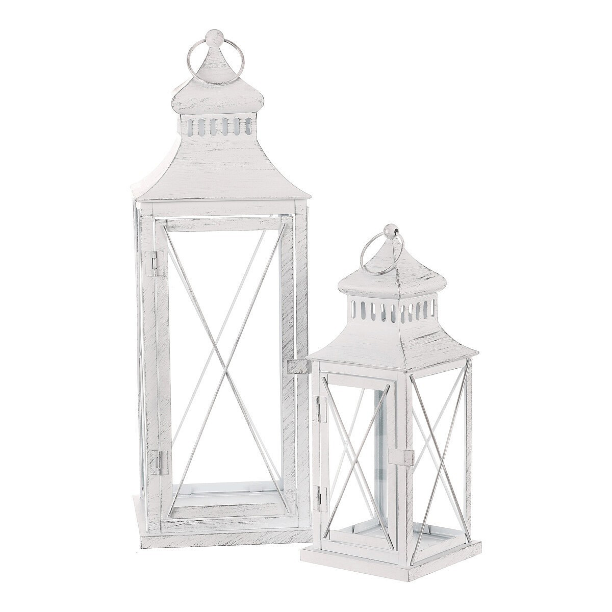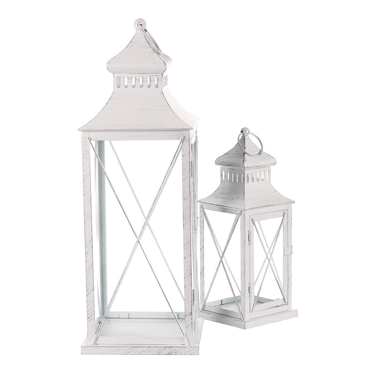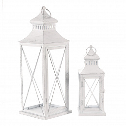 Lucerna kovová - čtyřboká, bílá, cena za sadu 2 ks