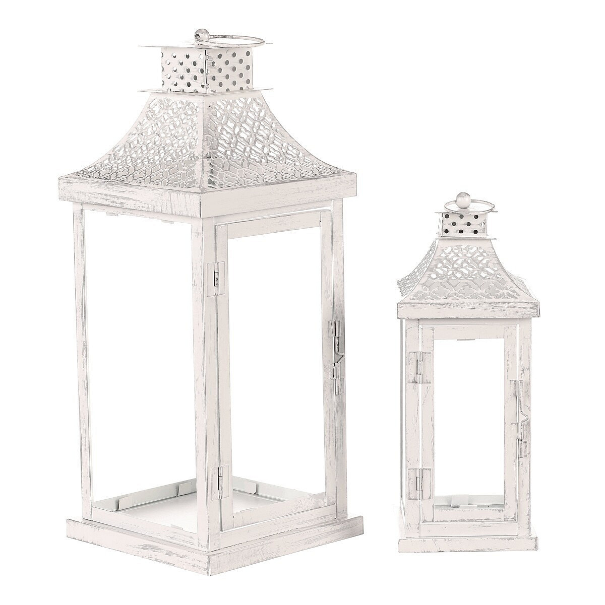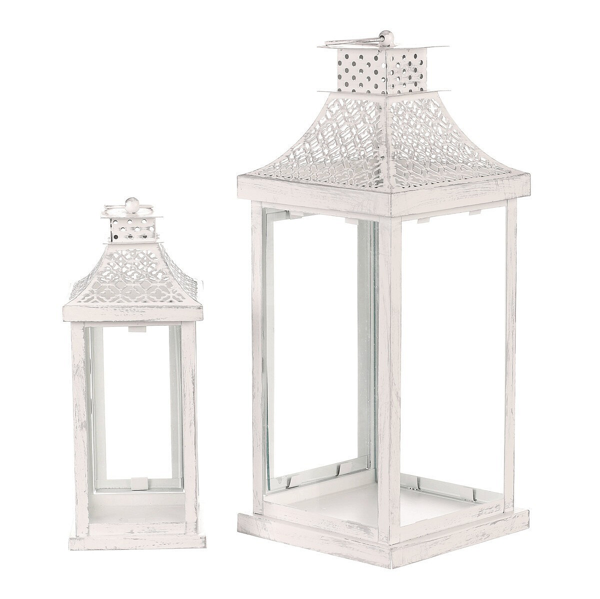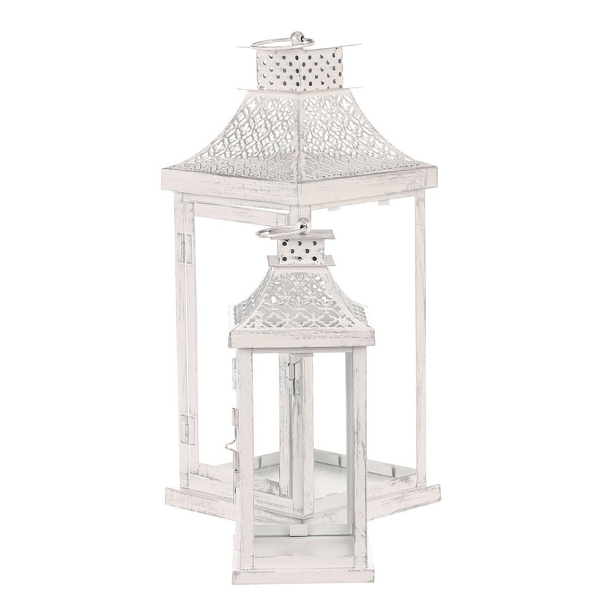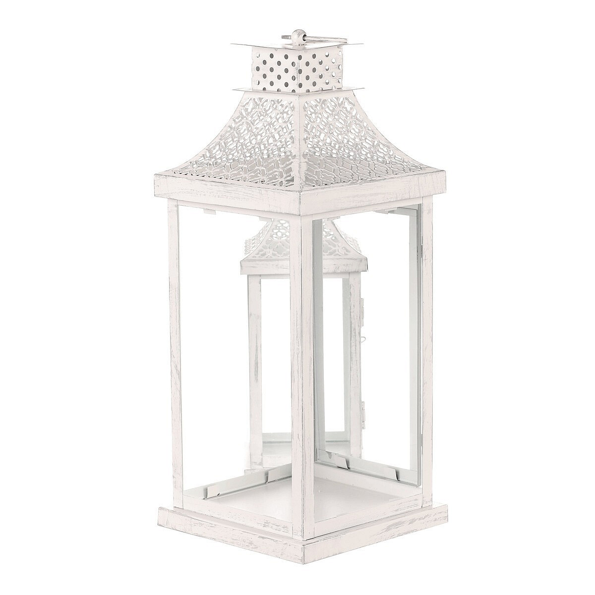Lucerna kovová - čtyřboká, bílá, cena za sadu 2 ks