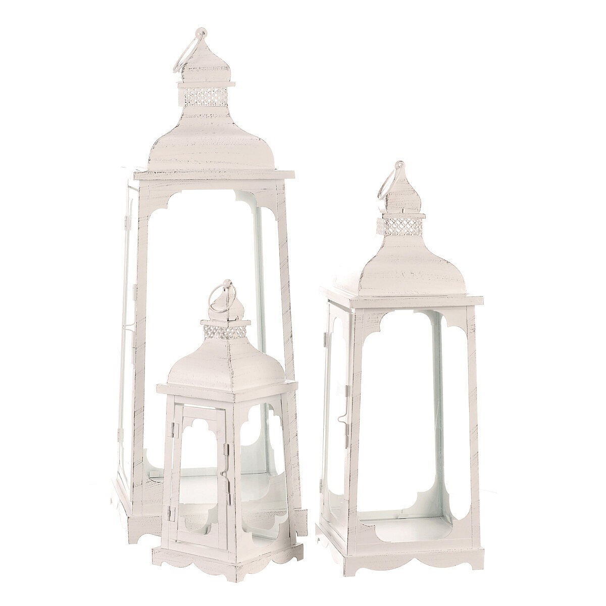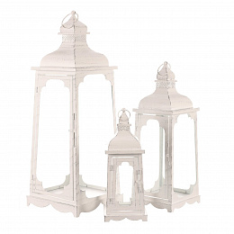 Lucerna kovová - čtyřboká, bílá, cena za sadu 3 ks