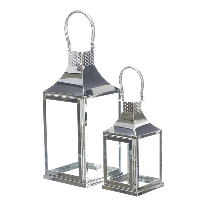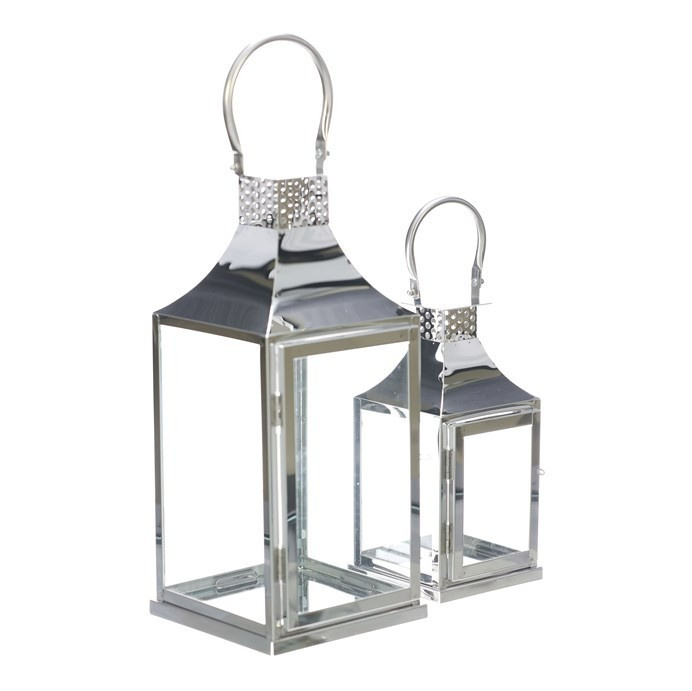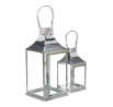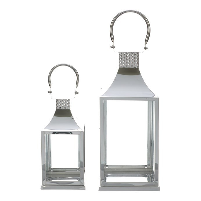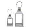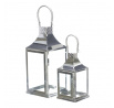 Lucerna kovová, tenké rámy - čtyřboká, stříbrná, cena za sadu 2 ks