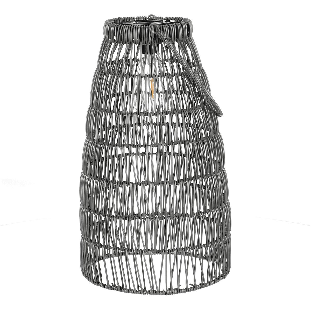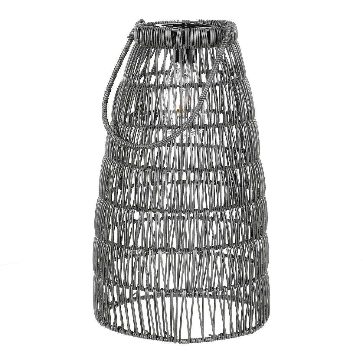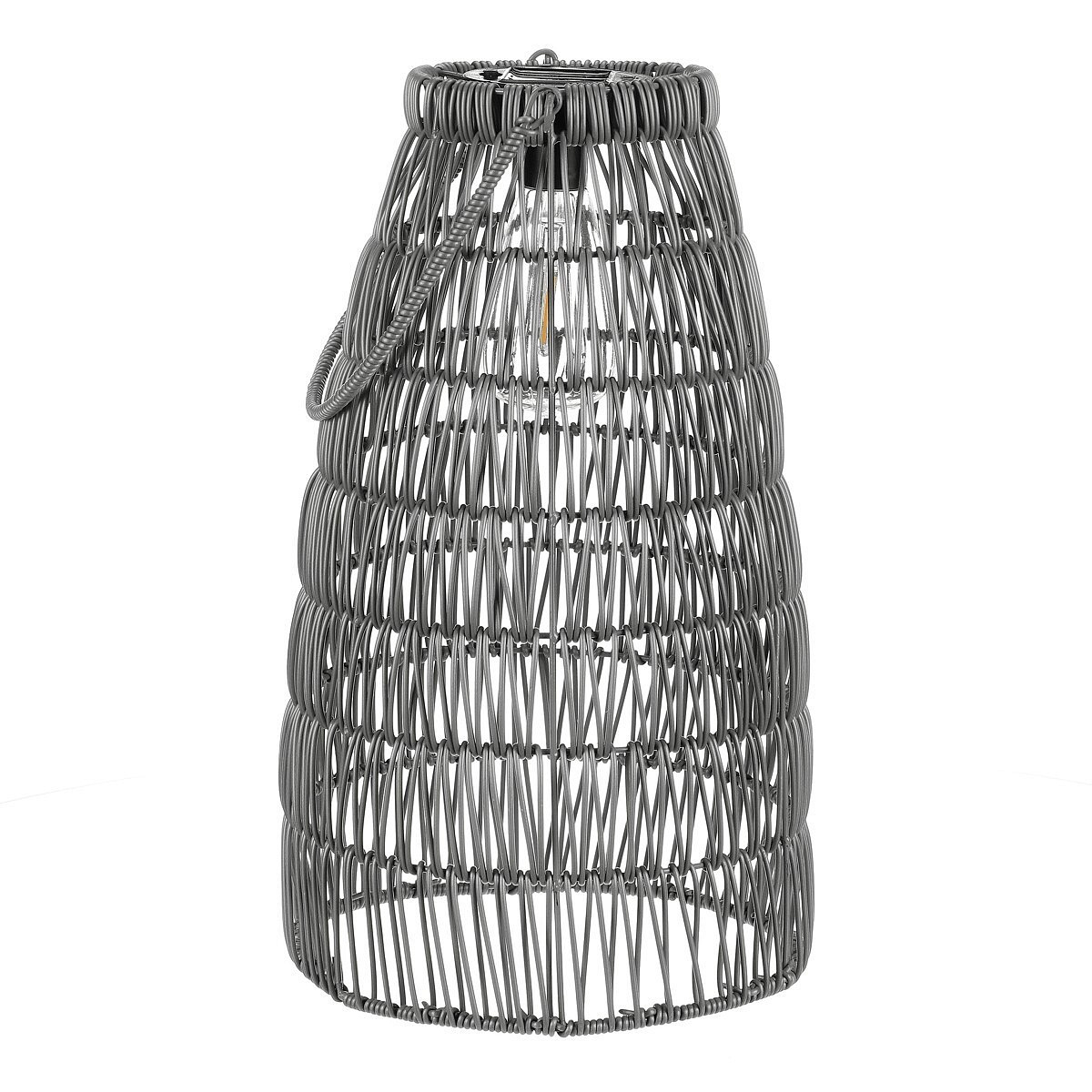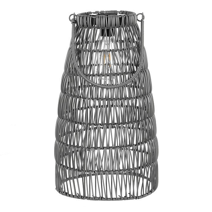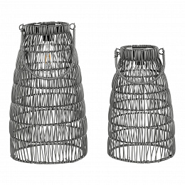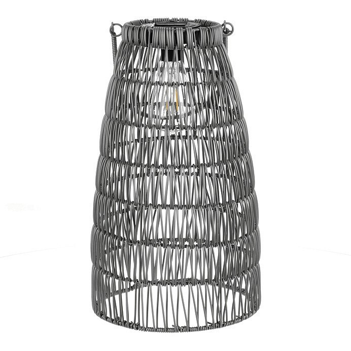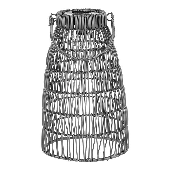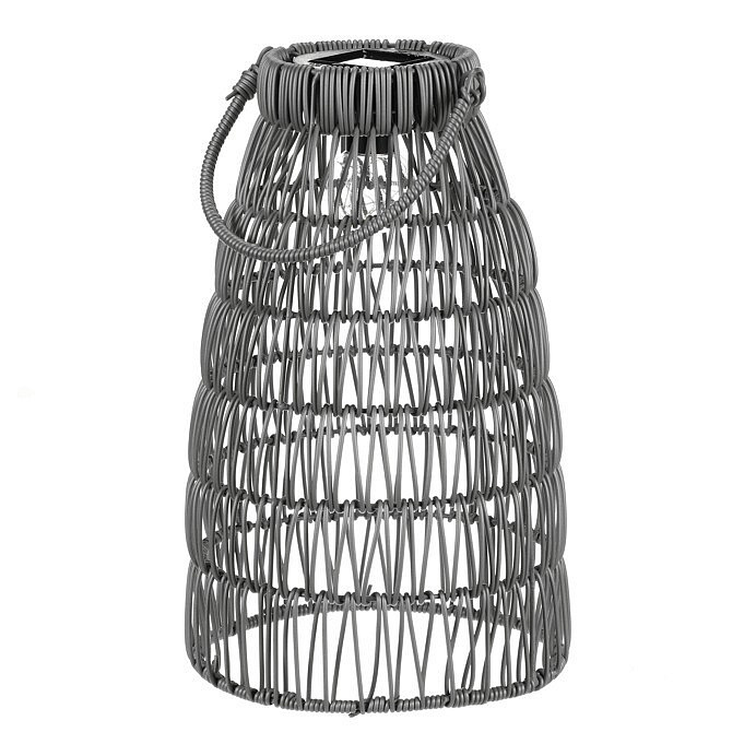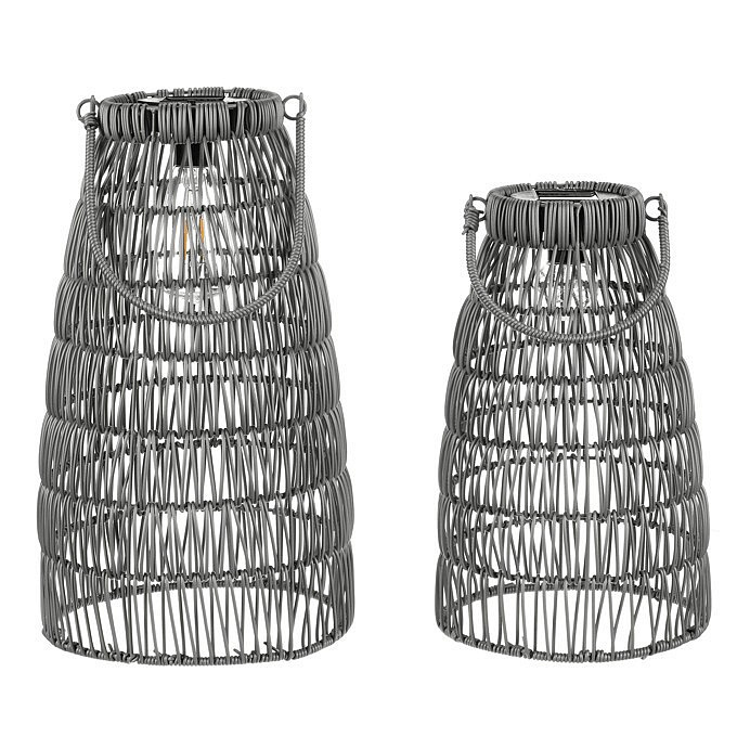 Lucerna - umělý ratan, kónická, LED osvětl., šedá, cena za sadu 2 ks