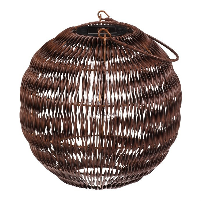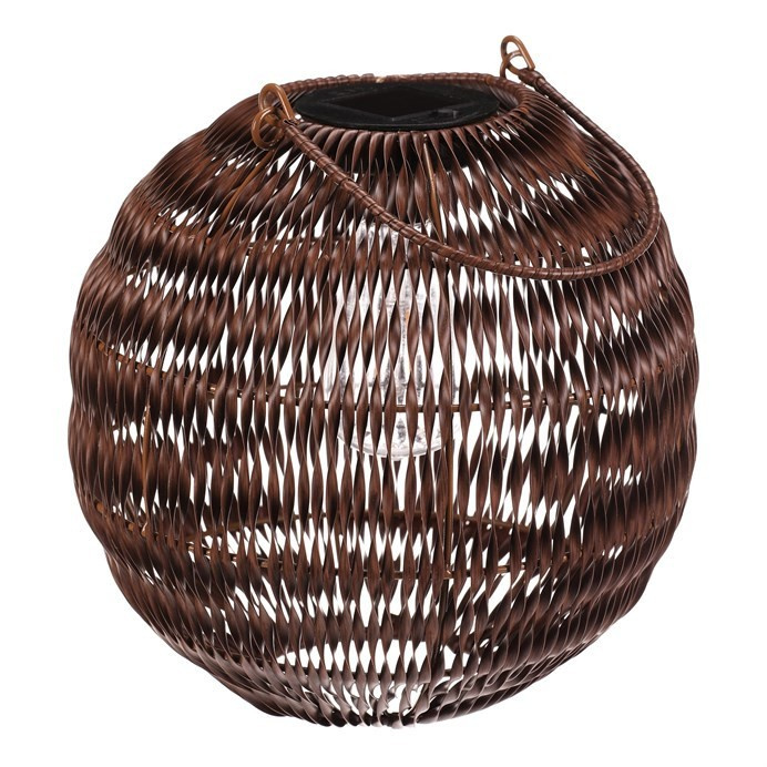 Kulovitý lampión z tmavě hnědého polyratanu nabízí příjemné LED osvětlení vhodné pro venkovní i vnitřní použití. Provedení z polyratanu zajišťuje odolnost vůči povětrnostním vlivům a snadnou údržbu. Lampión je vybaven praktickým držadlem pro snadné přenášení nebo zavěšení, což umožňuje variabilní umístění v prostoru. Jeho otevřená struktura vytváří zajímavý světelný efekt a zároveň umožňuje efektivní rozptyl světla. Velikost L poskytuje dostatečný zdroj světla pro vytvoření útulné atmosféry na terase, balkóně či zahradě. LED osvětlení je napájeno 1 x AA dobíjecí baterií a zároveň solárním panelem umístěným na horní hraně.
