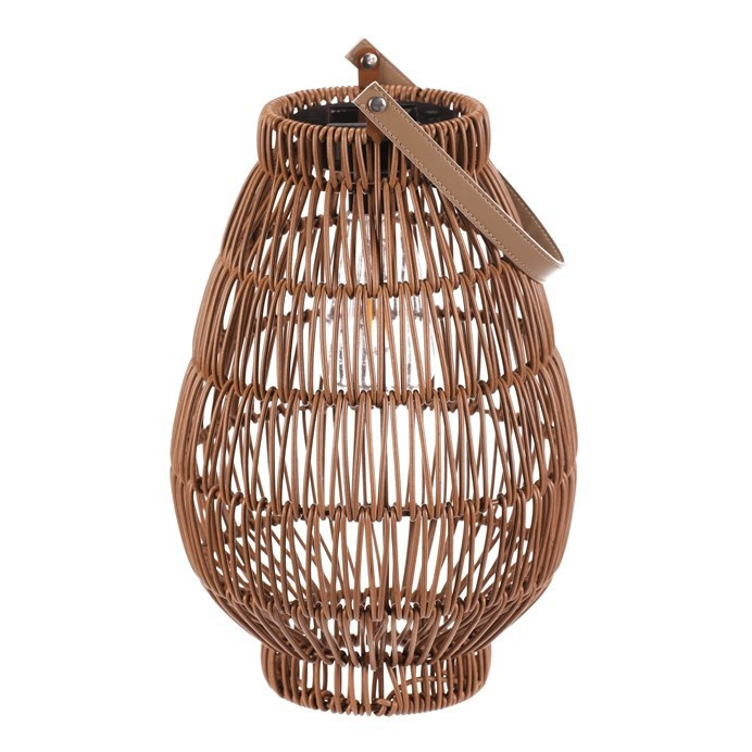 Lucerna z polyratanu - tvar hruška, LED osvětl., vel. M, světle hnědá