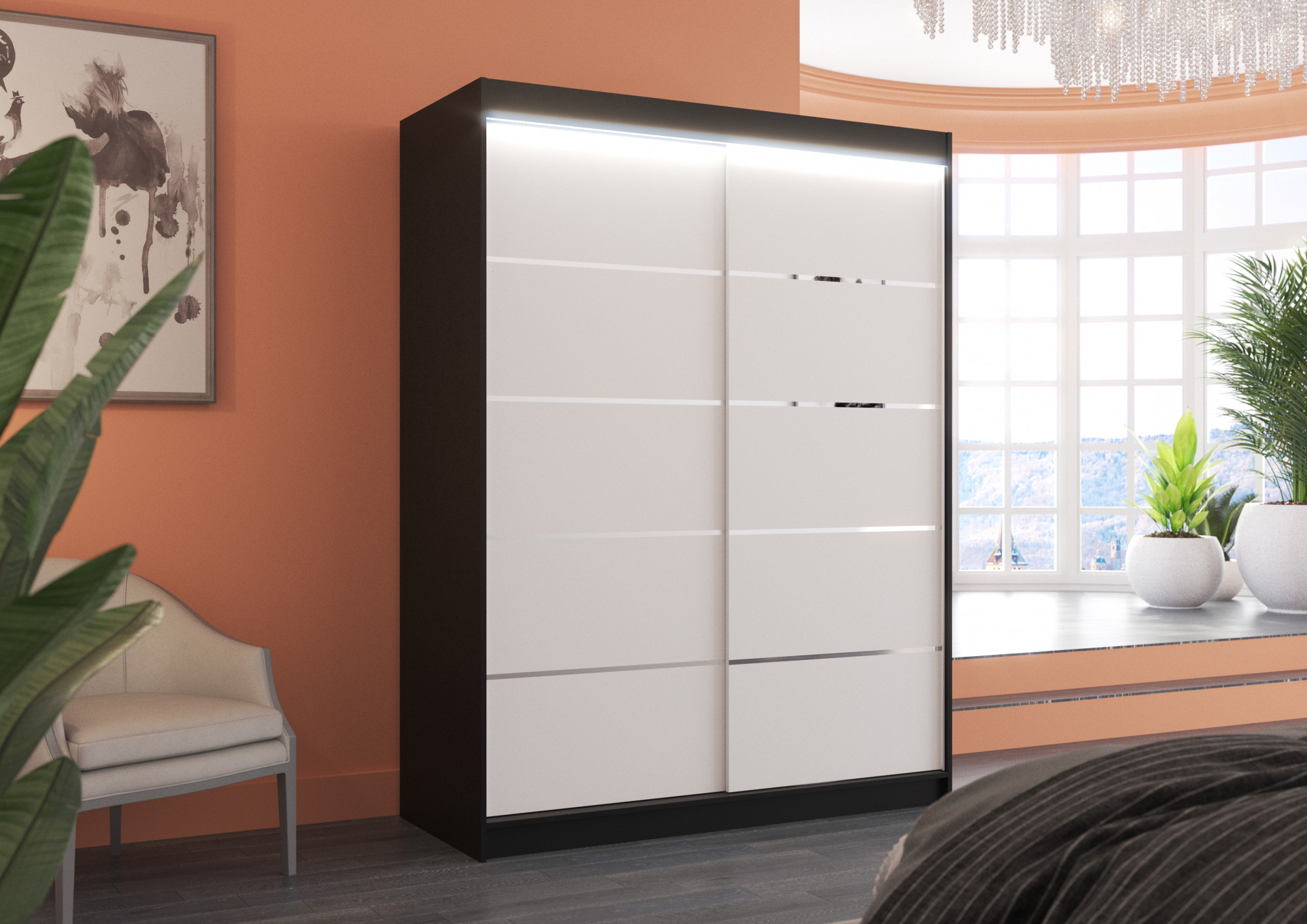 Posuvná skříň s LED osvětlením LUFT 150 Černá+Bílá