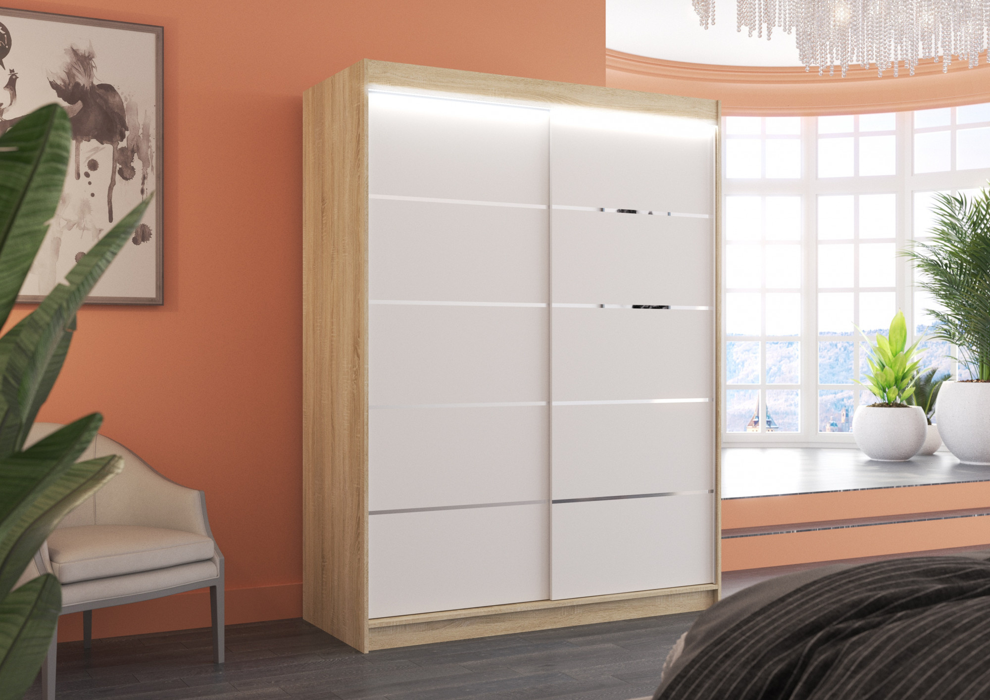 Posuvná skříň s LED osvětlením LUFT 150 Sonoma+Bílá