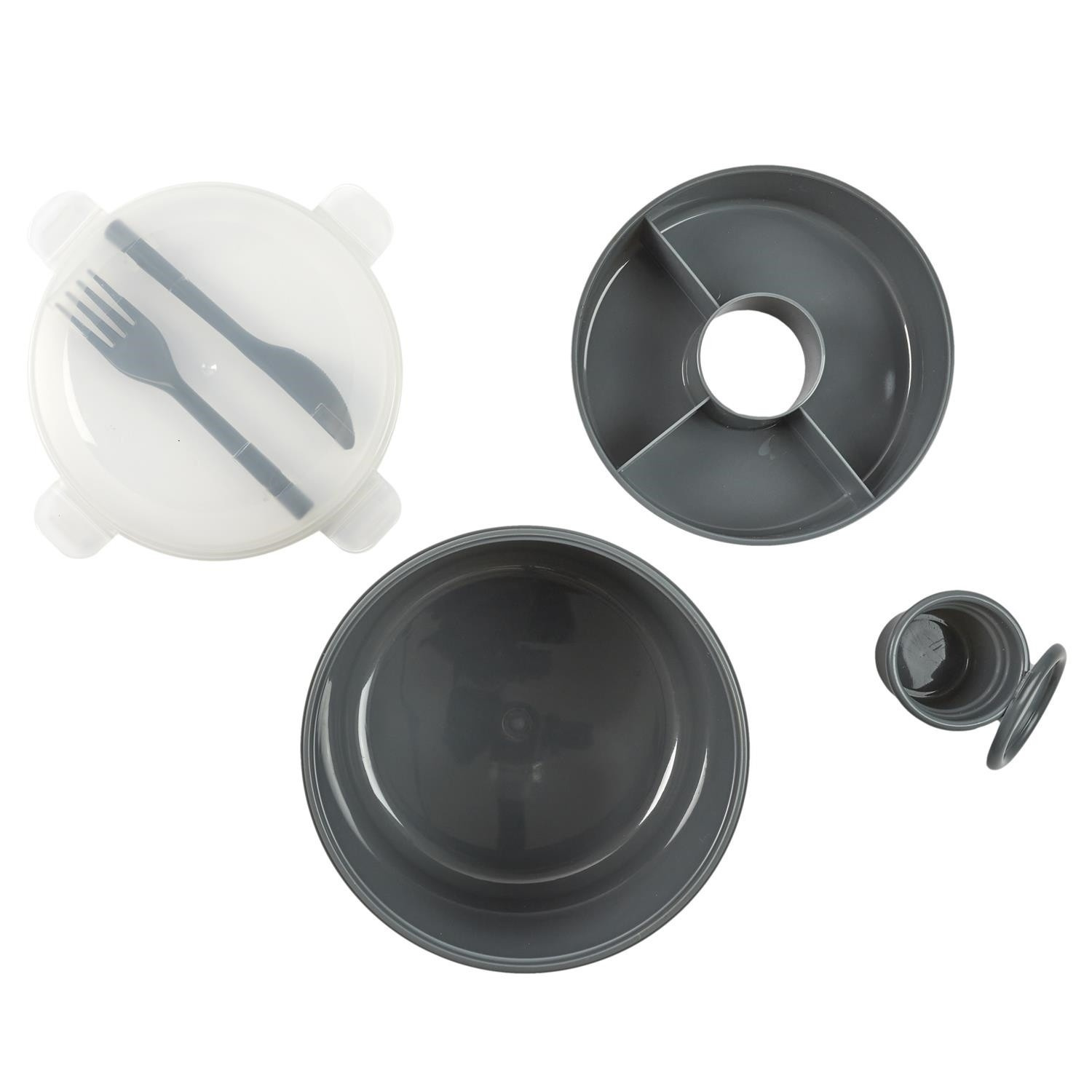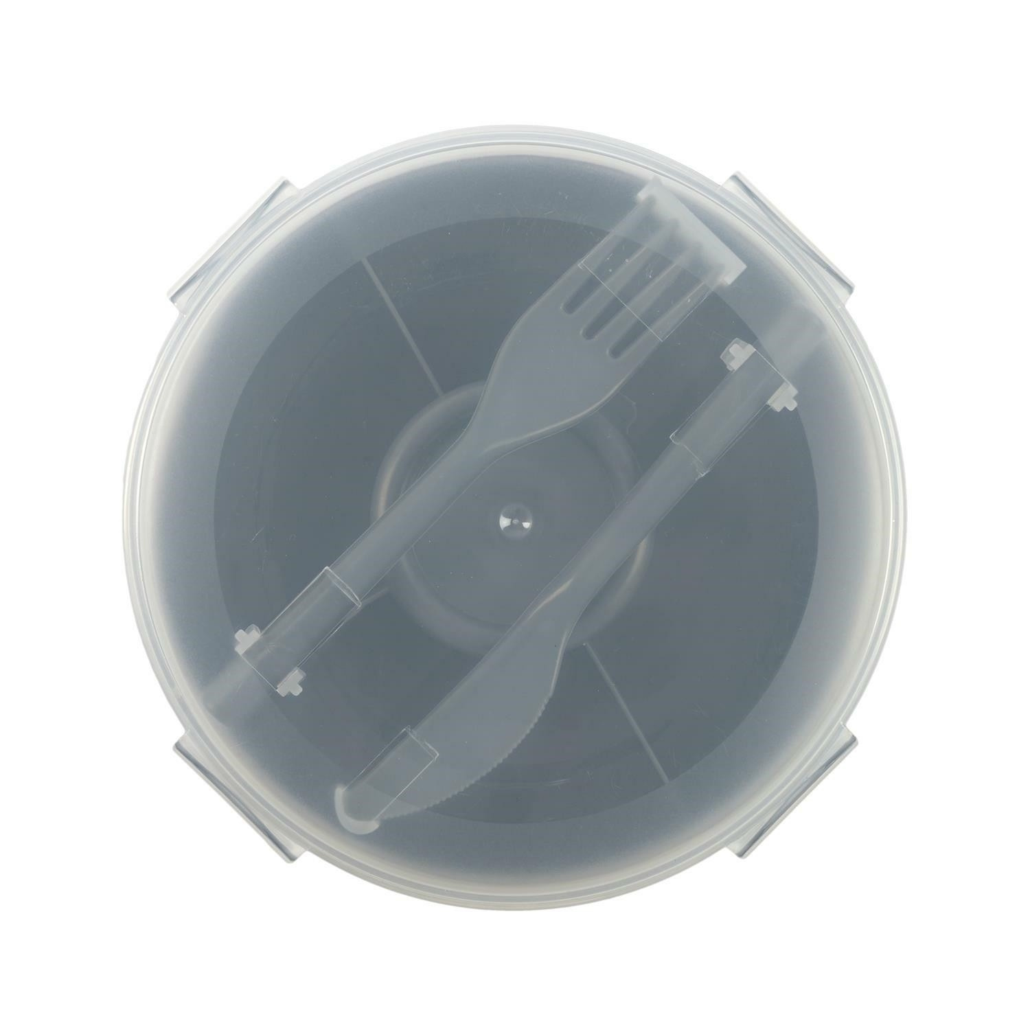 Kulatý lunch box je ideálním řešením pro osoby hledající praktický a funkční způsob uchovávání jídel na cestách, do práce nebo na piknik. Vyrobený z odolného plastu, tento lunch box zajišťuje pohodlí a dlouhodobou použitelnost. Jednou z hlavních vlastností tohoto kulatého lunch boxu je jeho víko se západkami, které zaručují bezpečné uzavření a udržení čerstvosti obsahu. Lunch box byl vybaven praktickými doplňky, jako je plastový nůž a vidlička, které jsou připevněny uvnitř krabičky. Díky tomu máte vše, co potřebujete, abyste mohli pohodlně jíst kdekoli. Další výhodou je vložka rozdělená na 4 komory, které umožňují oddělení různých složek a zachování jejich čerstvosti. Víko lunch boxu je průhledné, což umožňuje snadné a rychlé rozpoznání obsahu bez nutnosti otevírání. Lze mýt v myčce.