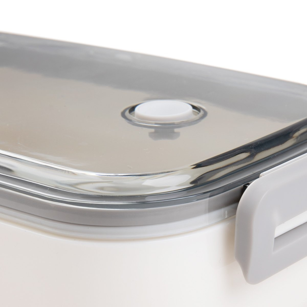 Bílý lunchbox s průhledným víkem