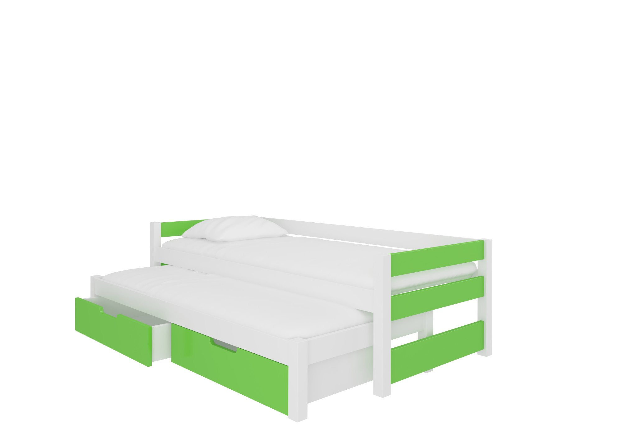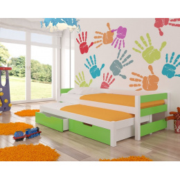 Dvojlůžko FRAGA je ideálním řešením v pokoji pro dvě sourozence. Dokonale se osvědčí také v případě návštěvy nečekaných hostů. Postel má dvě praktické a funkční zásuvky na ložní prádlo a odolný a pevný rám. Spolu s postelí obdržíte sadu pěnových matrací s bavlněnými potahy na zip.