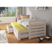 Dvojitá postel TOMI je ideálním řešením v pokoji pro dva sourozence. Dokonale se osvědčí také v případě návštěvy nečekaných hostů. Model je dostupný ve dvou velikostech a v mnoha barvách, které se hodí do každého uspořádání. Postel má dvě praktické a funkční zásuvky na ložní prádlo a odolný a pevný rám vyrobený z borovicového dřeva. Spolu s postelí obdržíš sadu pěnových matrací o tloušťce 8 cm.