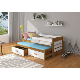 Dvojlůžko s bariérkou TIARRO je ideálním řešením do pokoje pro dva sourozence. Dokonale se osvědčí také v případě návštěvy nečekaných hostů. Model je dostupný ve dvou velikostech a v mnoha barvách, které se hodí do každého uspořádání. Postel má dvě praktické a funkční zásuvky na ložní prádlo a odolný a pevný rám vyrobený z borovicového dřeva. Pro zvýšení bezpečnosti vašeho dítěte byl model doplněn o další zábradlí chránící před pádem. Matrace nejsou součástí postele.