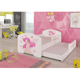 Dvojlůžko s bariérkou a matracemi PEPE II GIRL WITH WINGS 160x80 Bílá